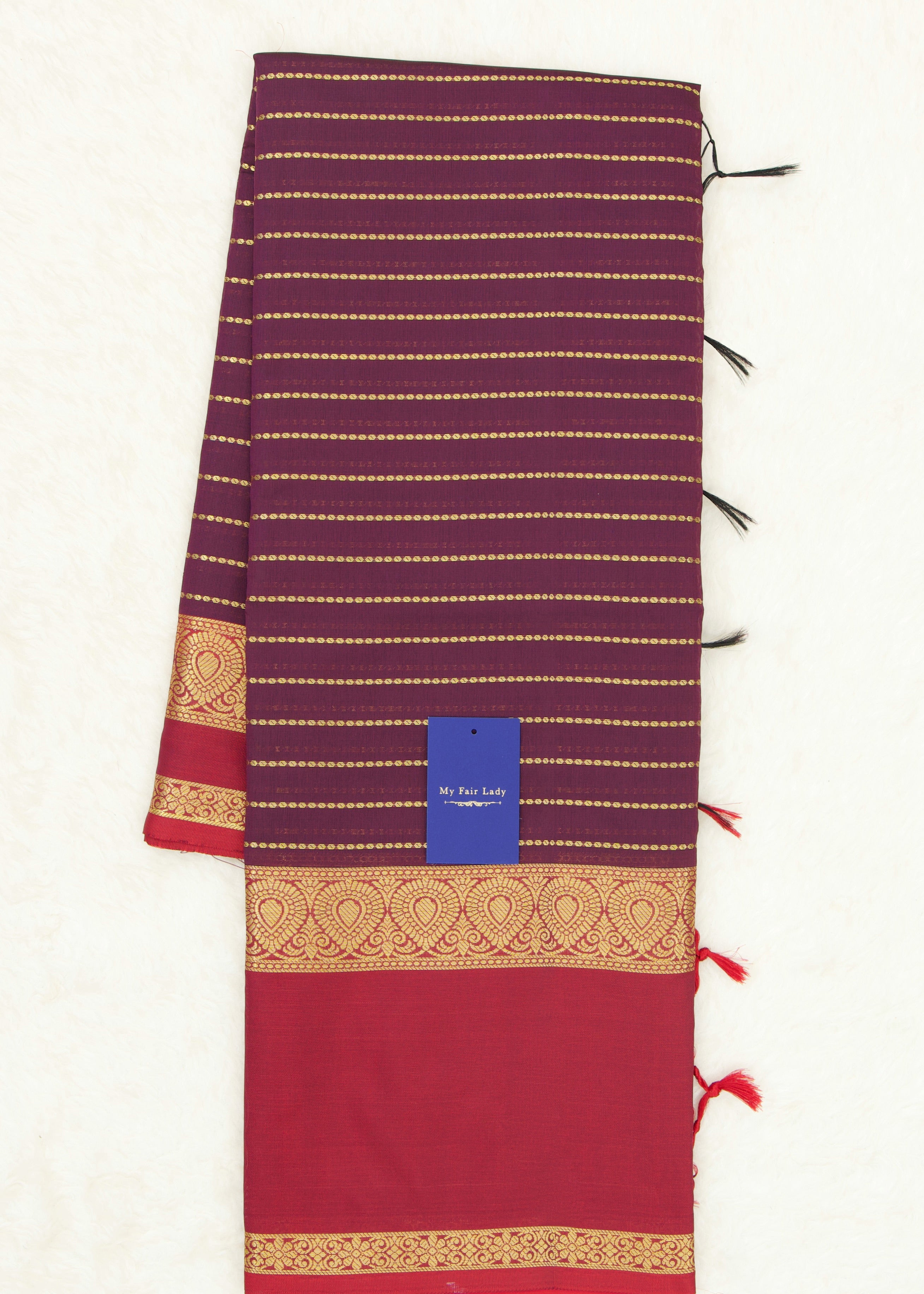 Brocade Mysore Semi-Silk Saree Wine Colour - [Code 1045]