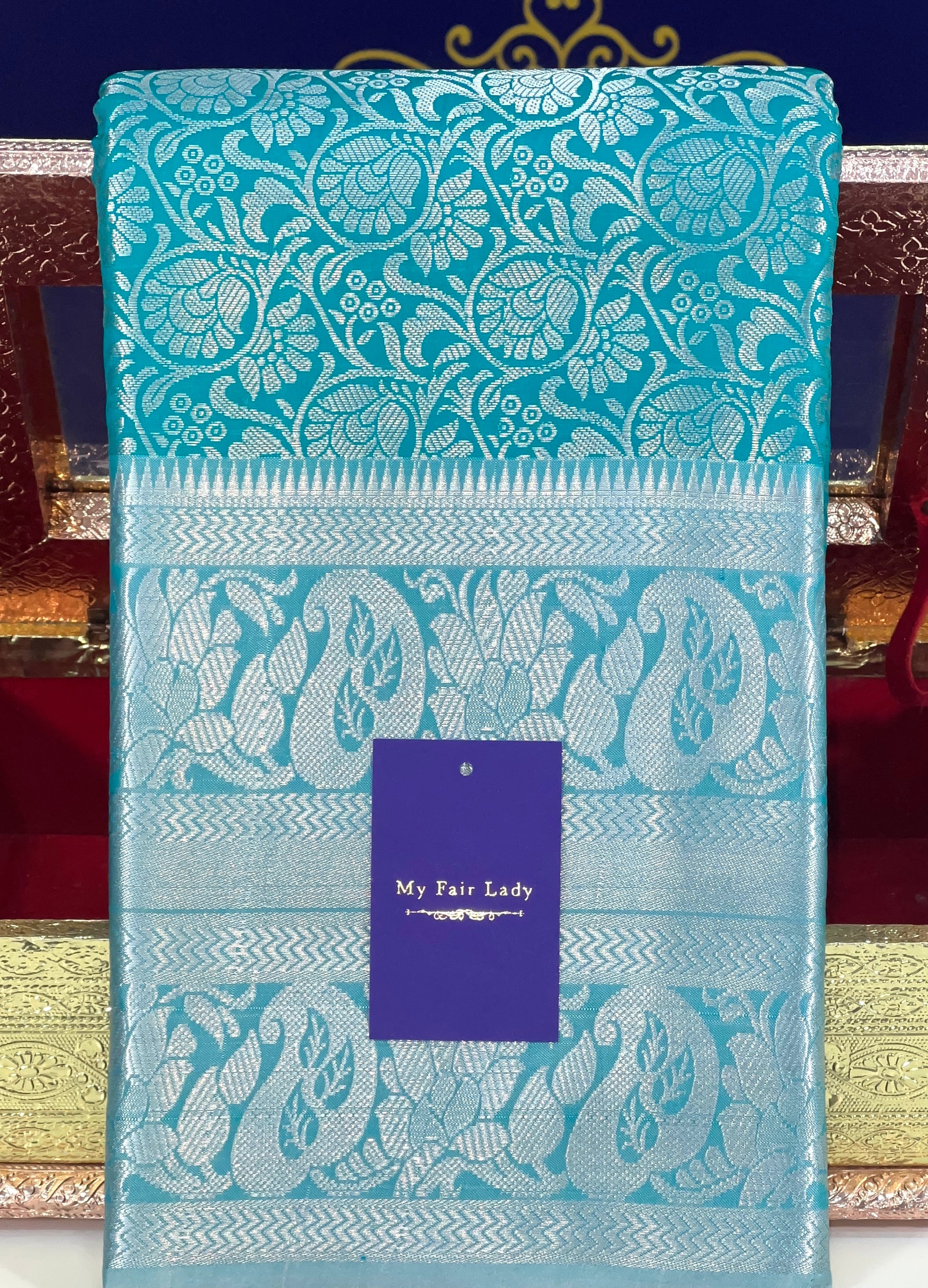 Brocade Semi-Silk Saree Sea Blue Colour - [Code 898]