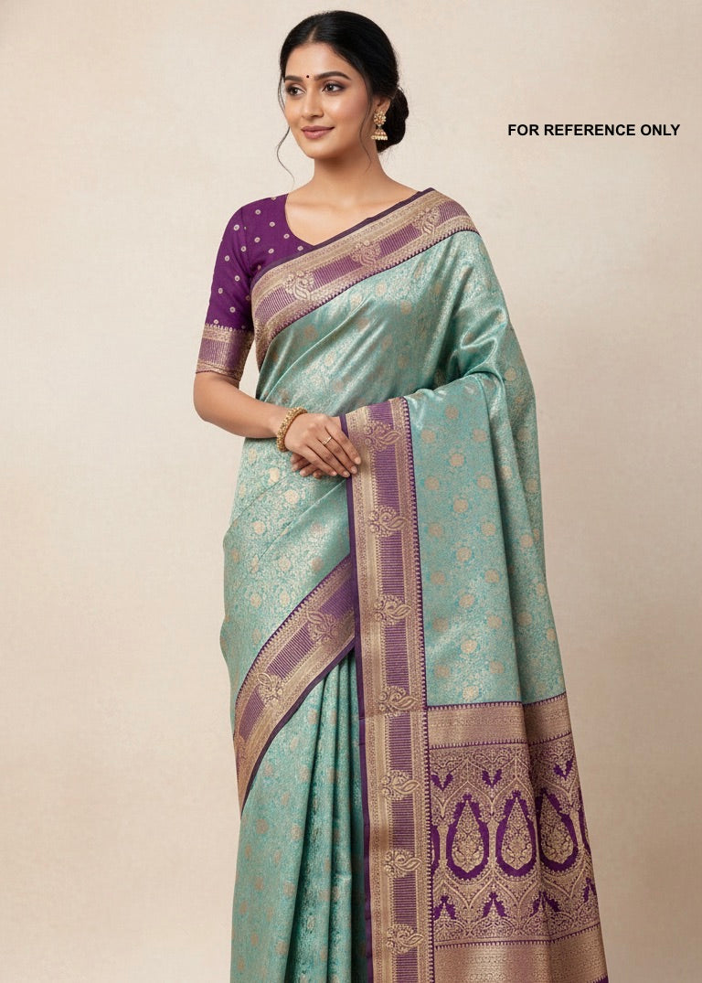 Brocade Tissue Semi-Silk Saree Cool Mint Color - [Code 1023]