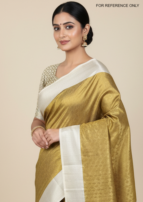 Brocade Tissue Semi-Silk Saree Moss Gold Colour - [Code 891]