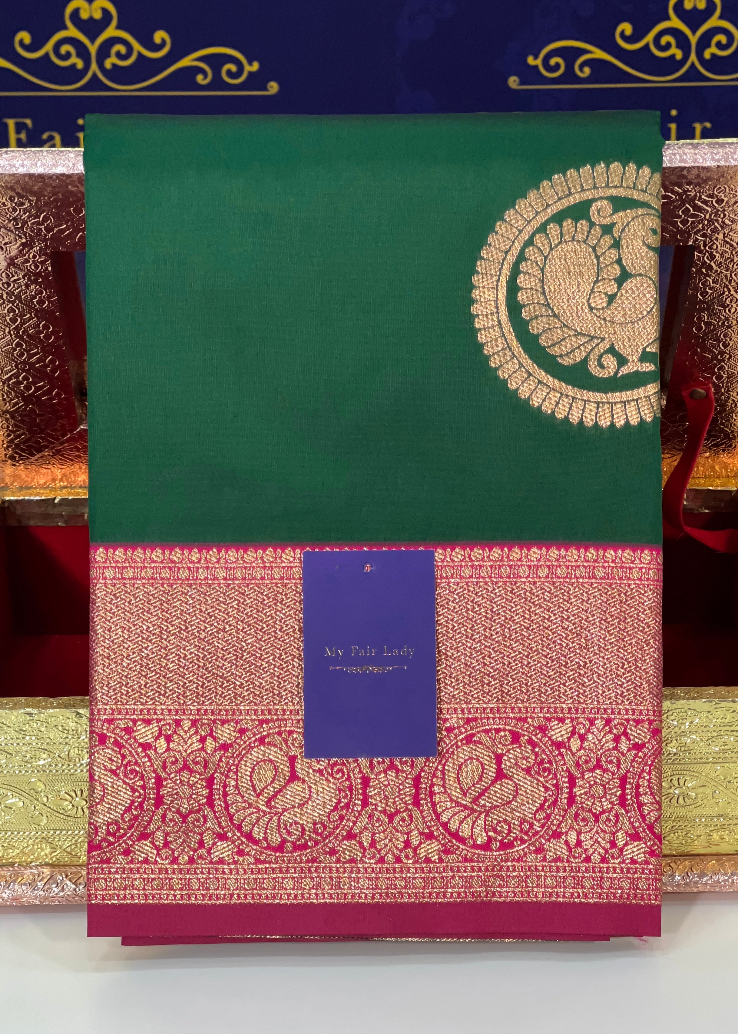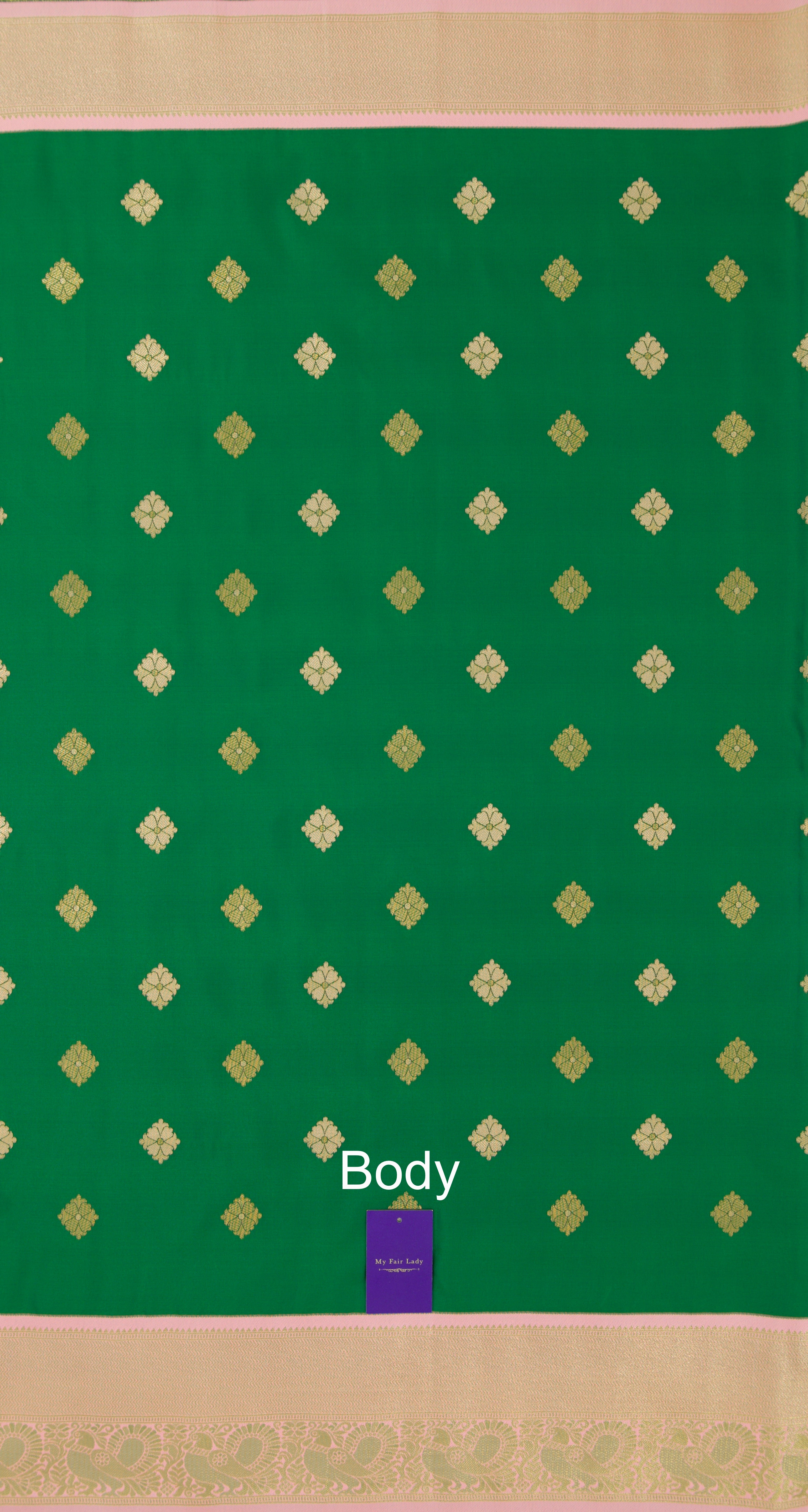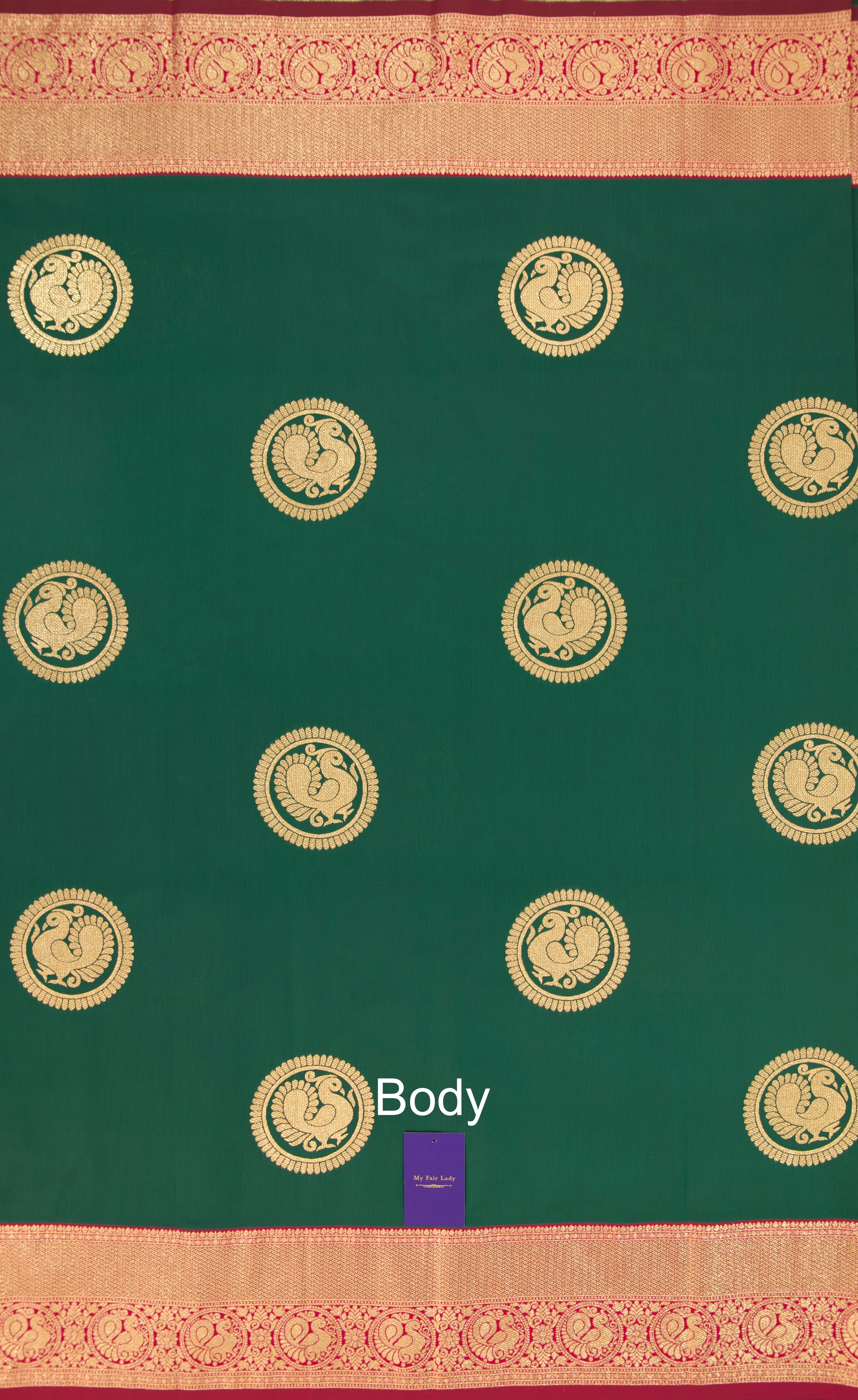 Butta Semi-Silk Saree Bottle Green Colour - [Code 1002]