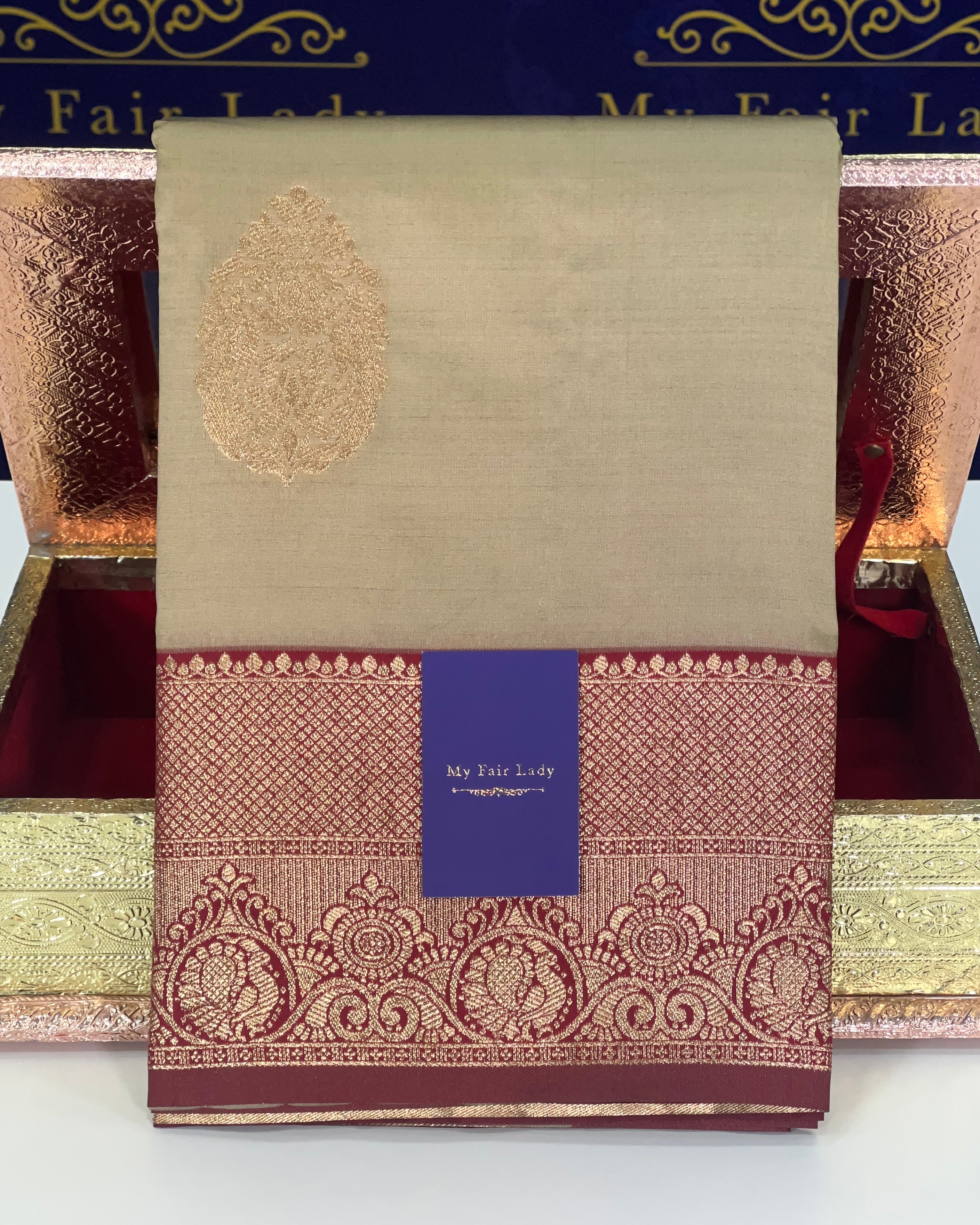 Butta Semi-Silk Saree Burgundy Colour - [Code 1005]