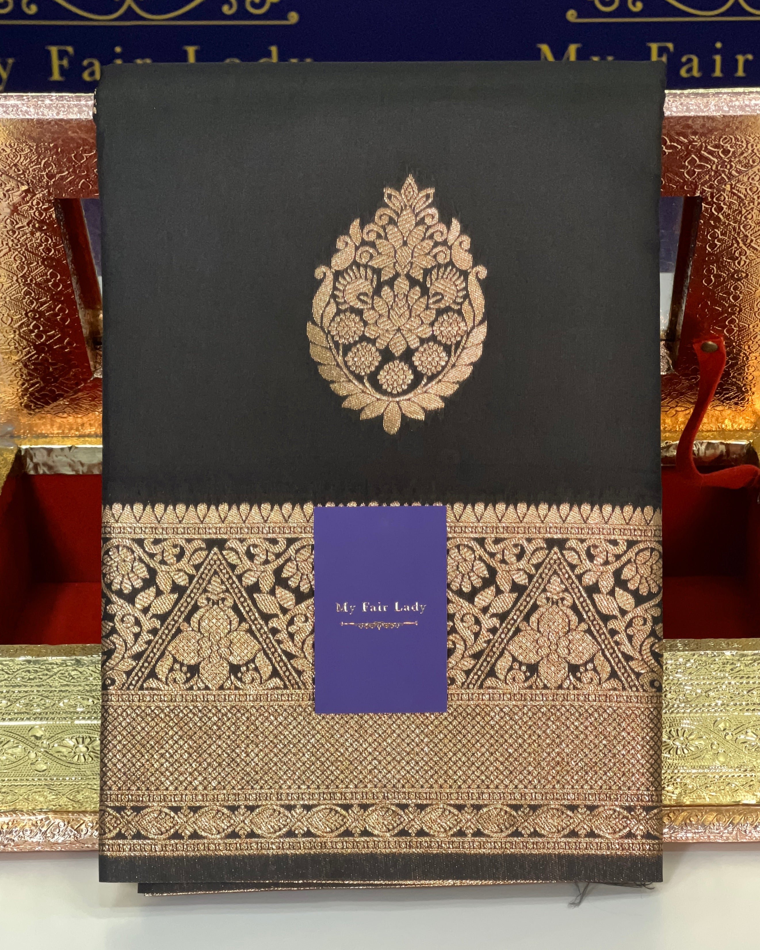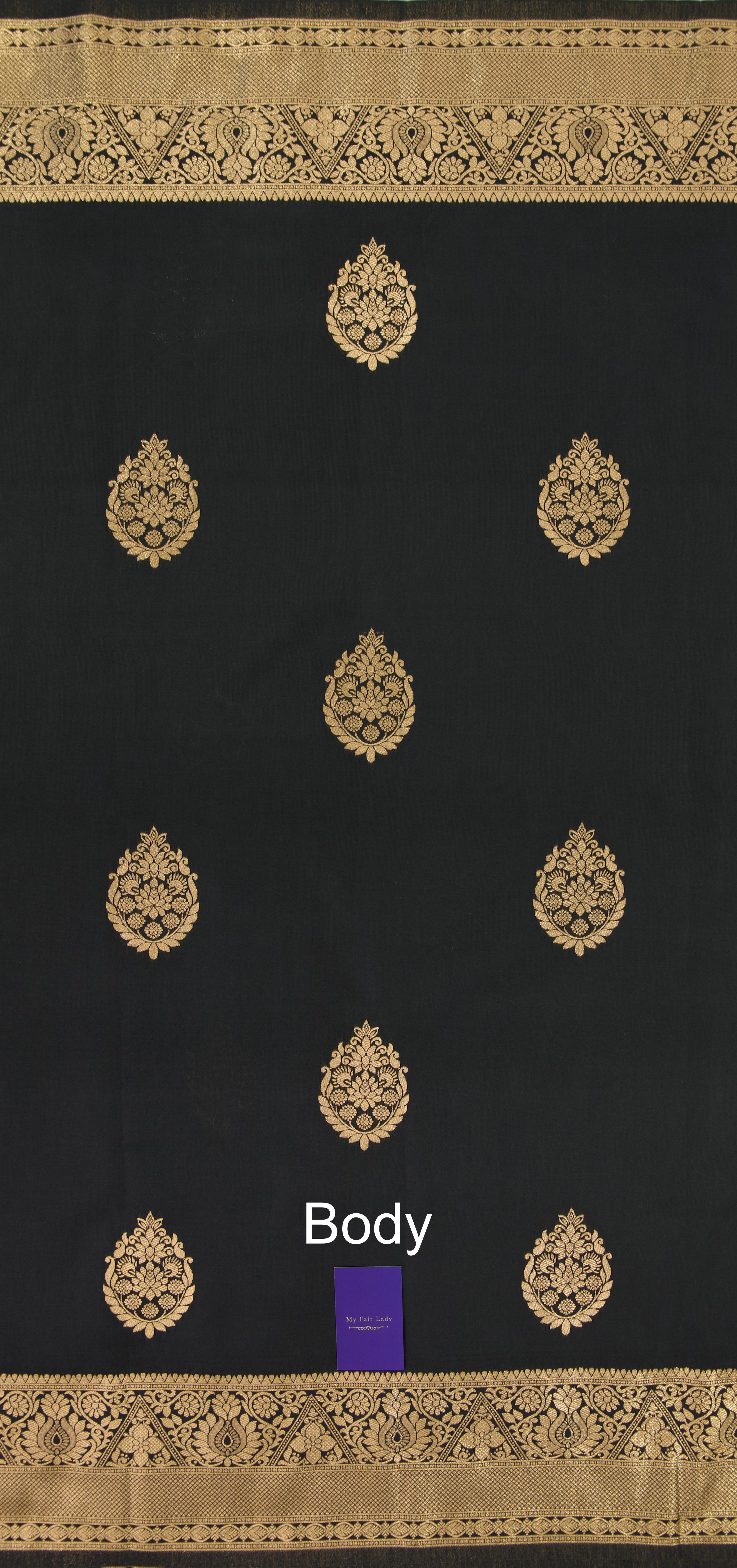Butta Semi-Silk Saree Black X Golden Colour - [Code 1010]
