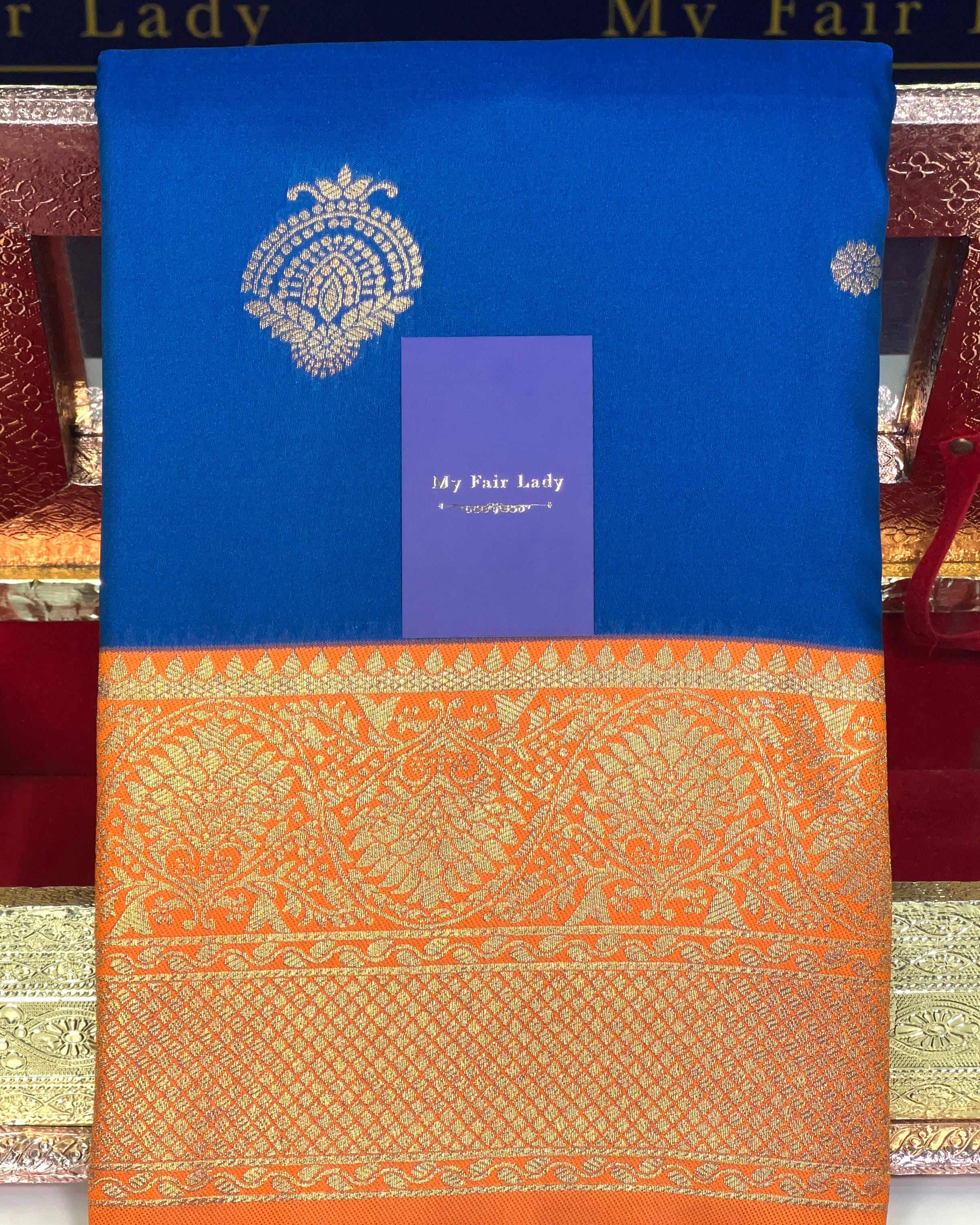 Butta Semi-Silk Saree Dark Blue Colour - [Code 1032]