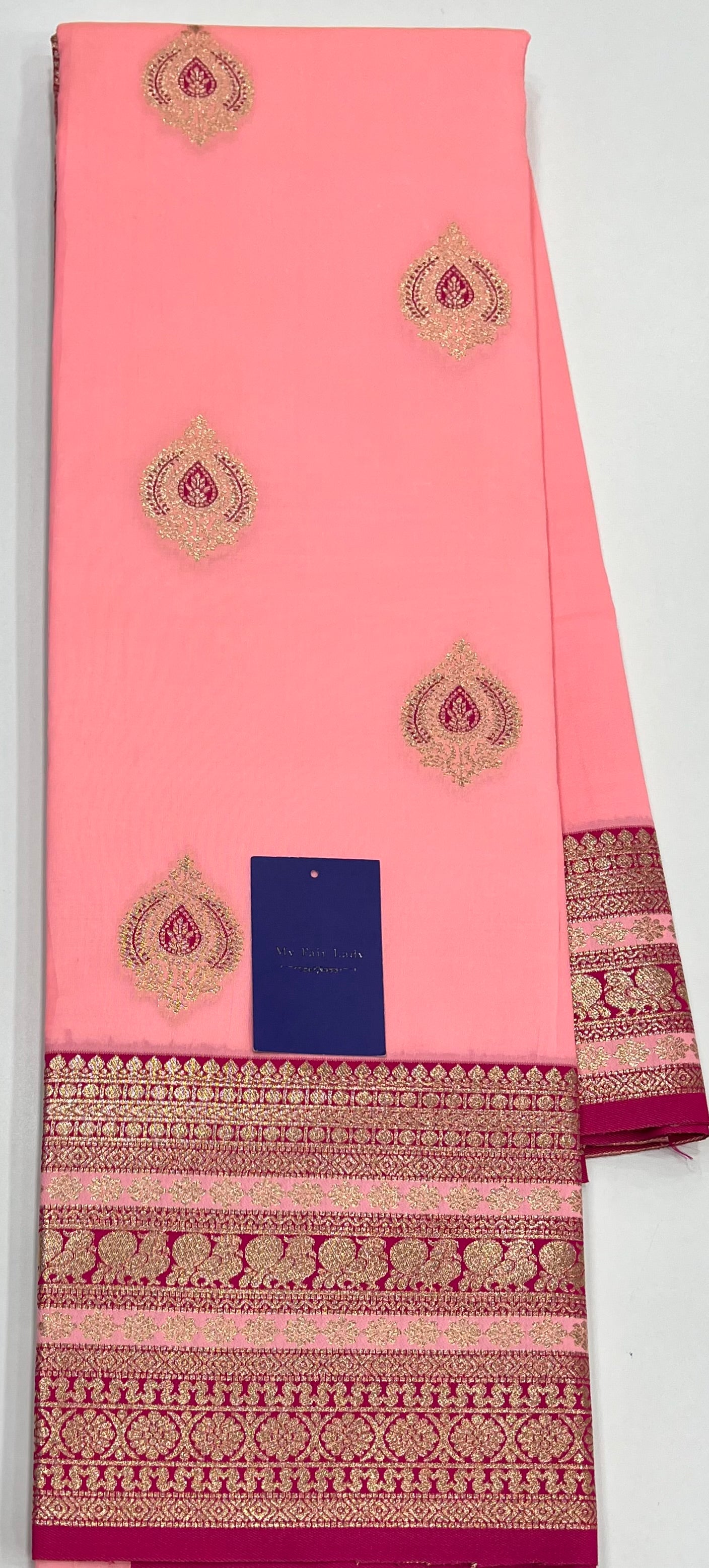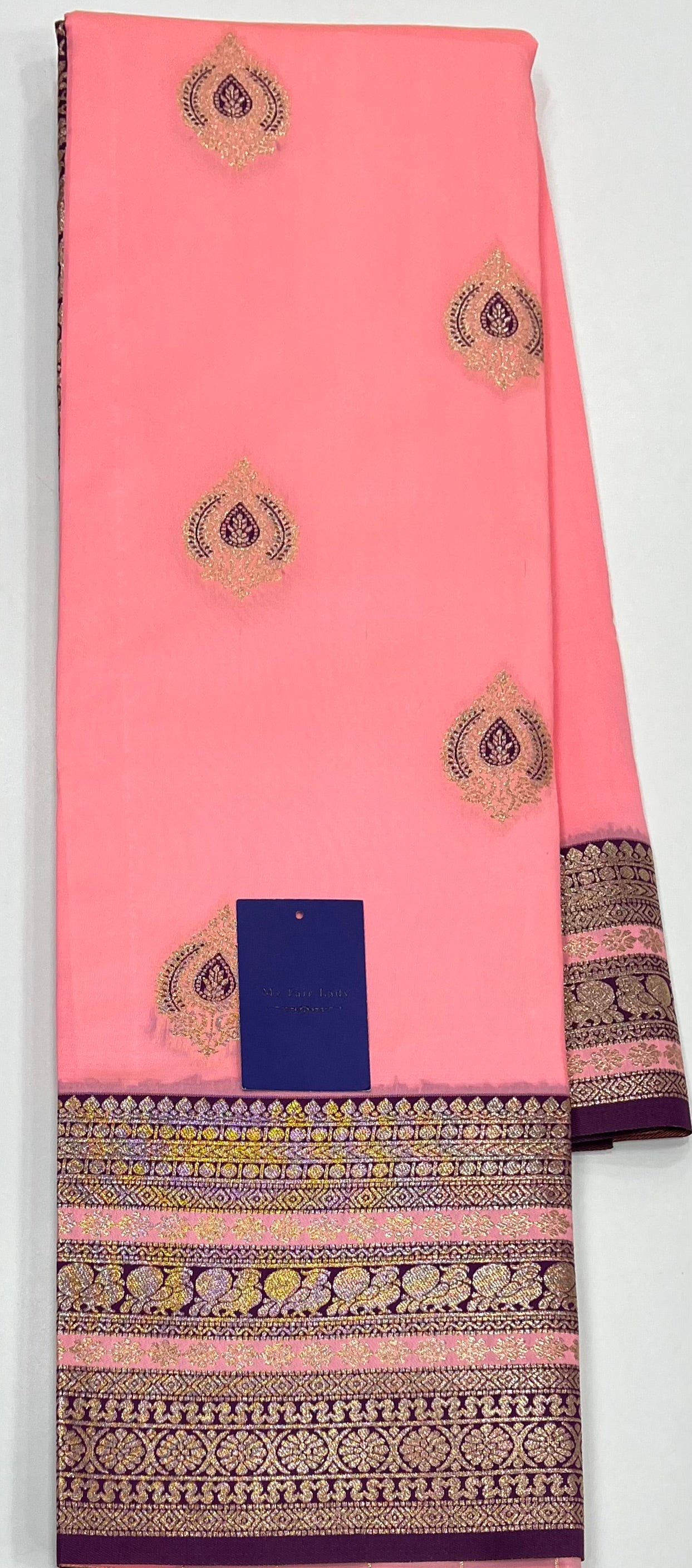 Butta Semi-Silk Saree Flamingo Pink X Purple Colour - [Code 878]