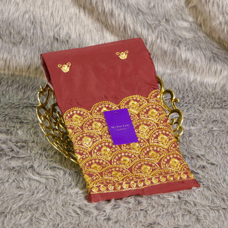Brocade Designer Blouse Piece Brick Red Colour - [Code 608]