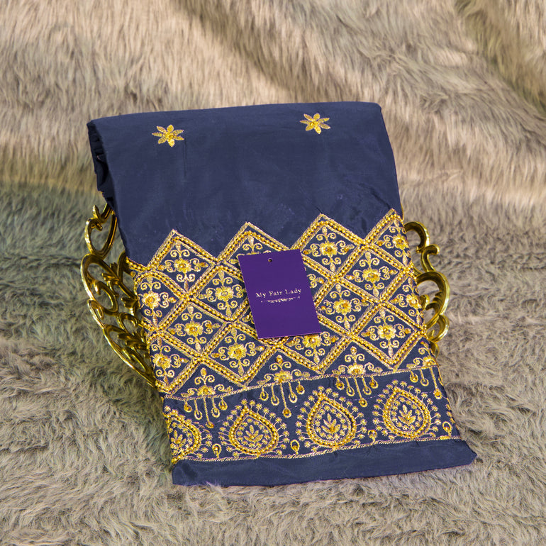 Brocade Designer Blouse Piece Dark Blue Colour - [Code 605]