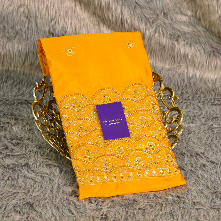 Brocade Designer Blouse Piece Yellow Colour - [Code 608]