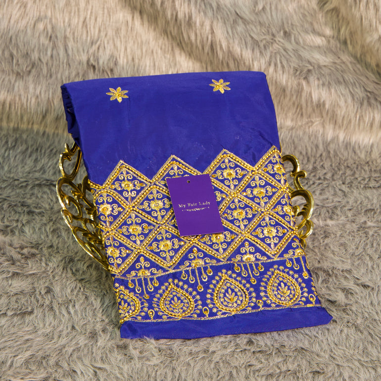 Brocade Designer Blouse Piece Royal Blue Colour - [Code 605]