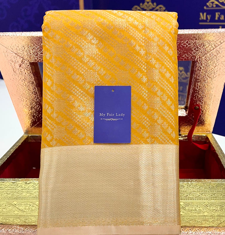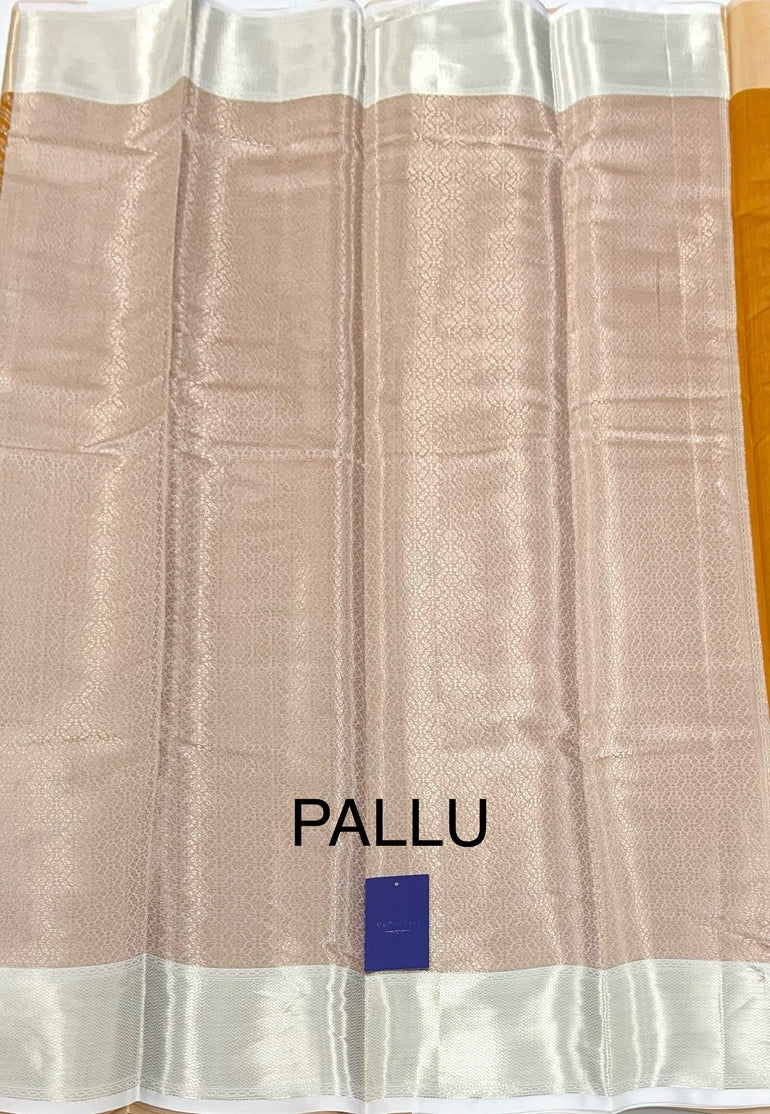 Brocade Tissue Semi-Silk Saree Orange Colour - [Code 890]