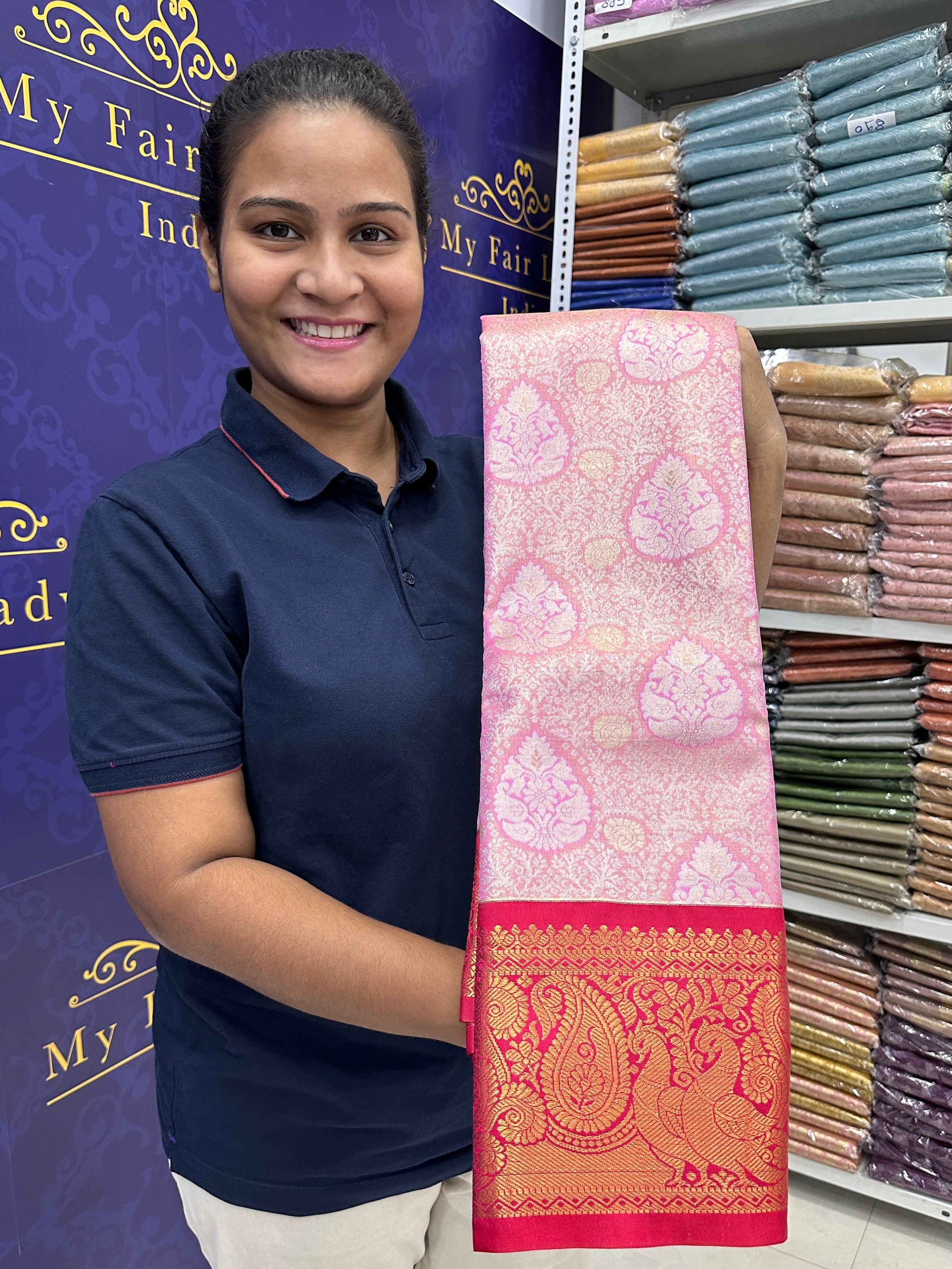 Premium Brocade Semi-Silk Saree Peach Pink Colour - [Code 829]