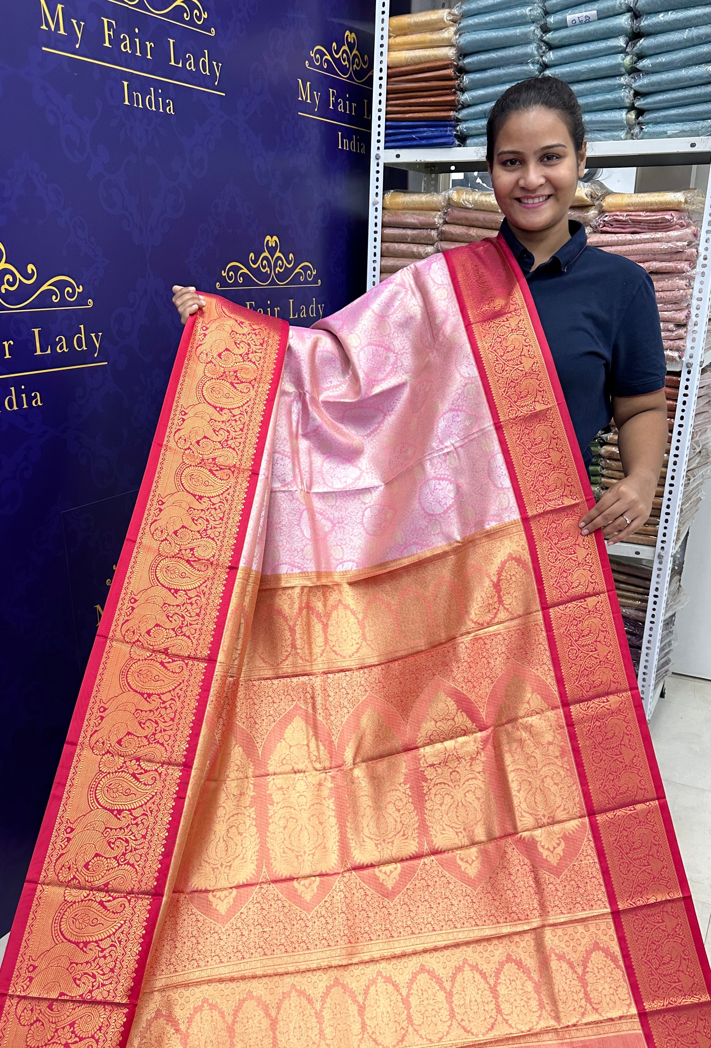 Premium Brocade Semi-Silk Saree Baby Pink Colour- [Code 972]