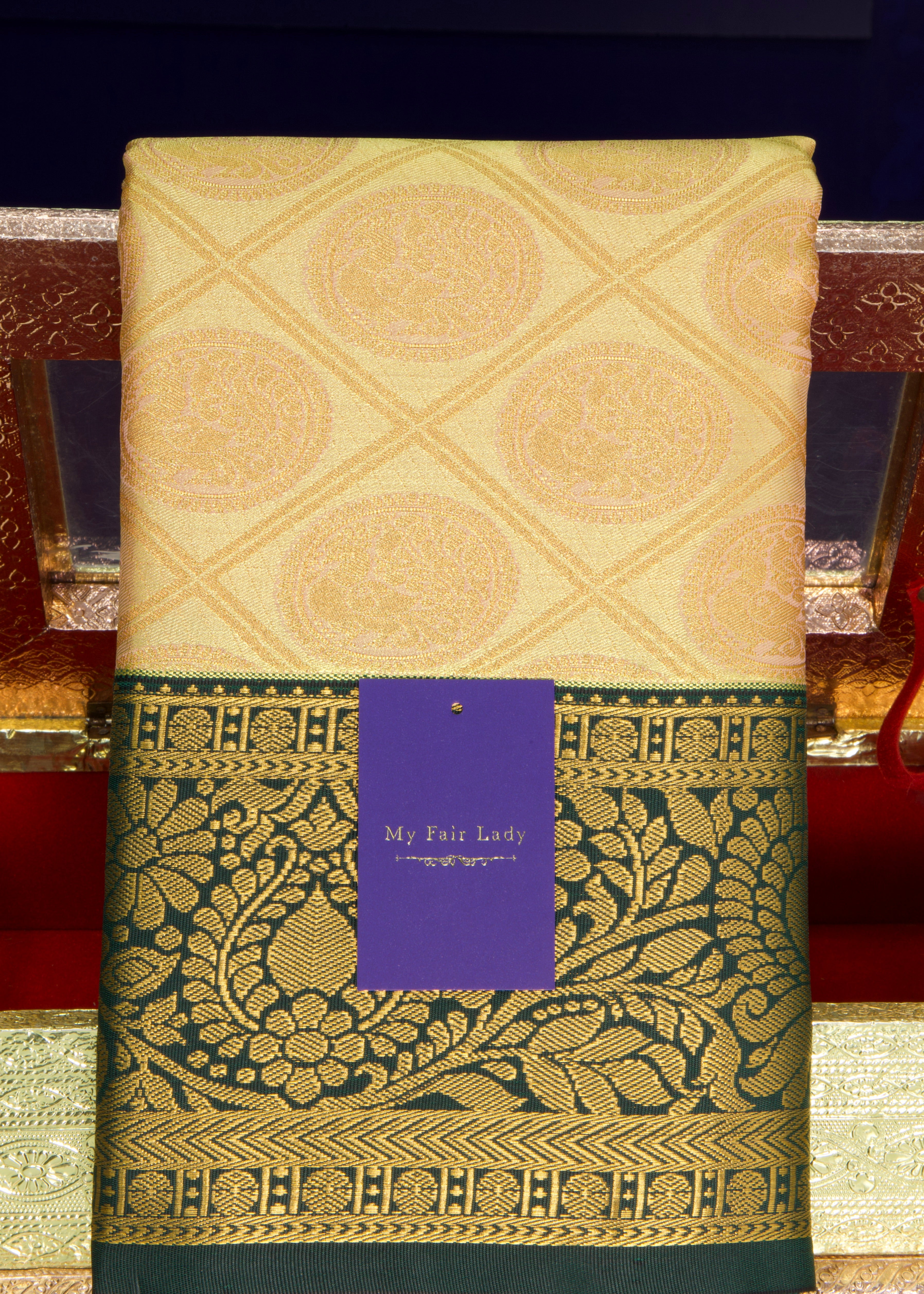 Premium Gadwal Semi-Silk Saree Yellow X Dark Green Colour - [Code 1504]