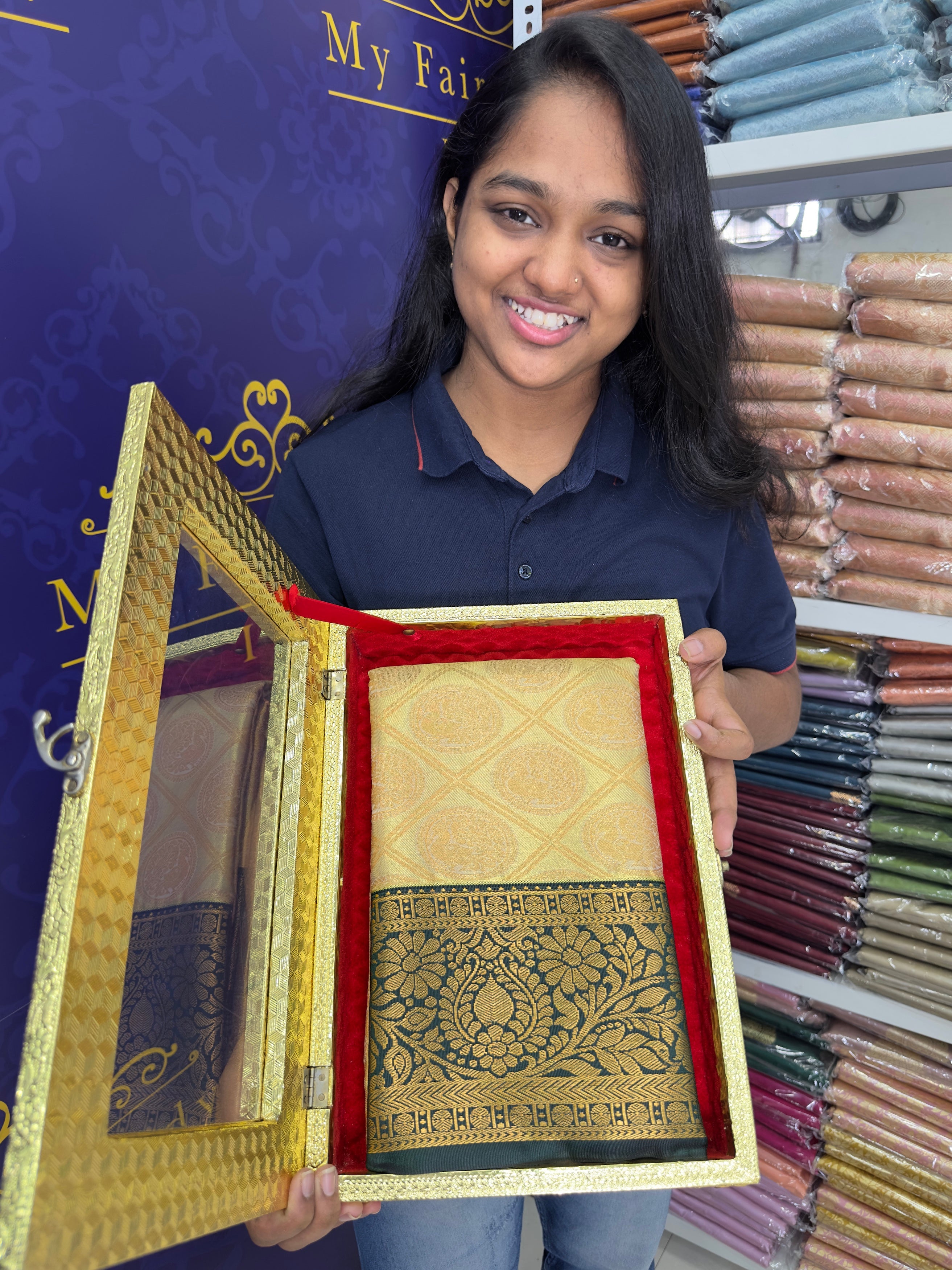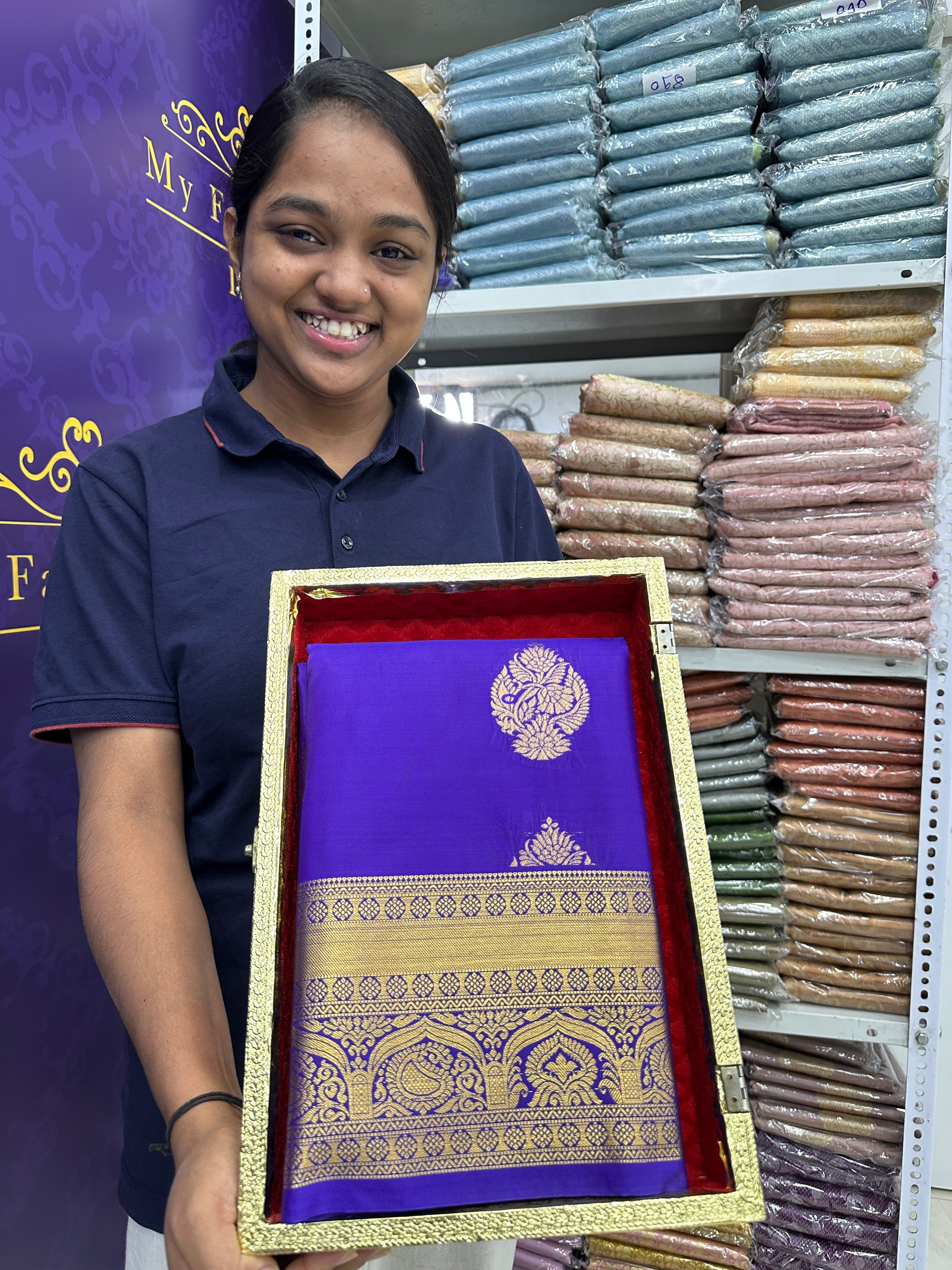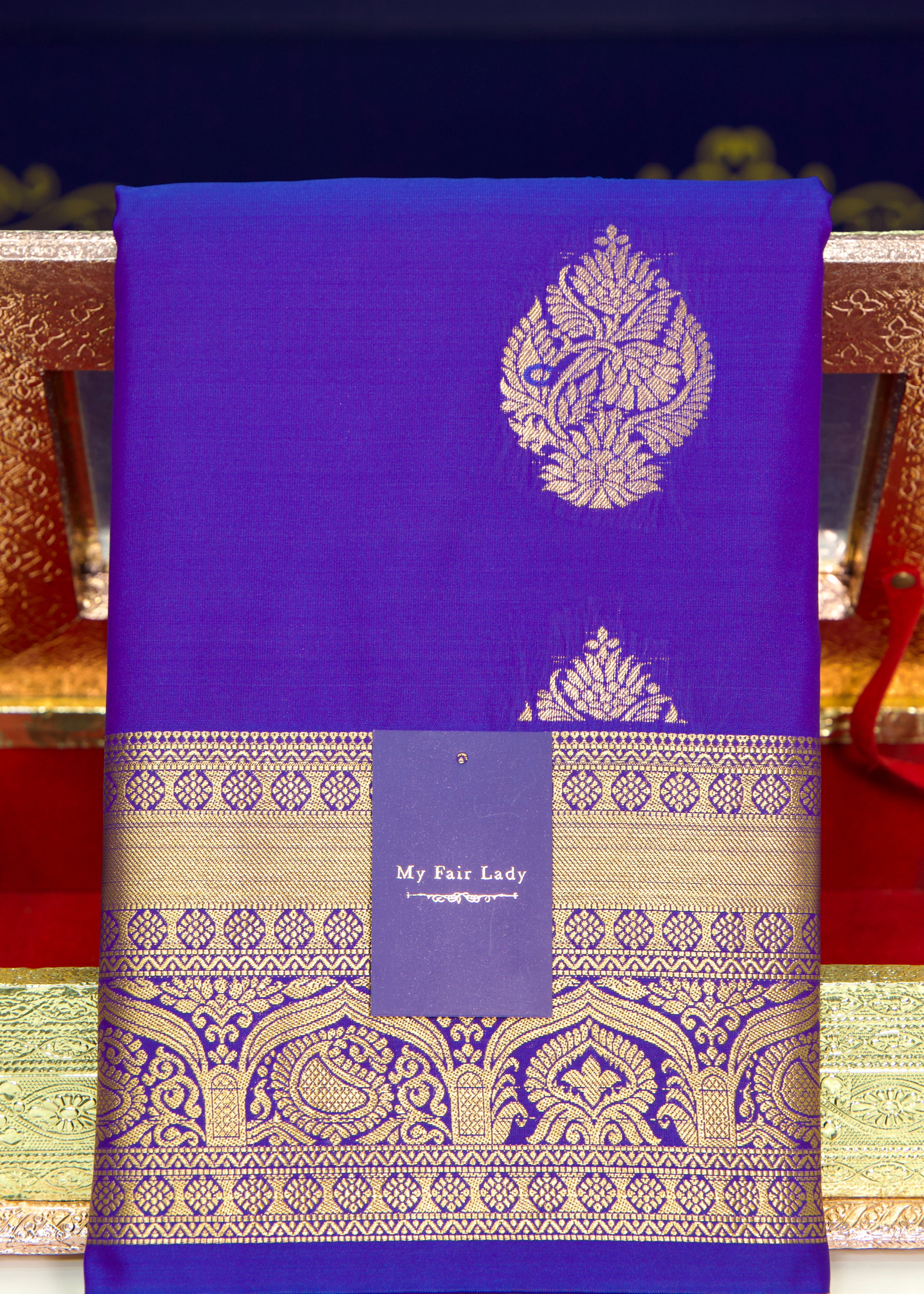 Premium Brocade Semi-Silk Saree Dark Blue Colour- [Code 959]