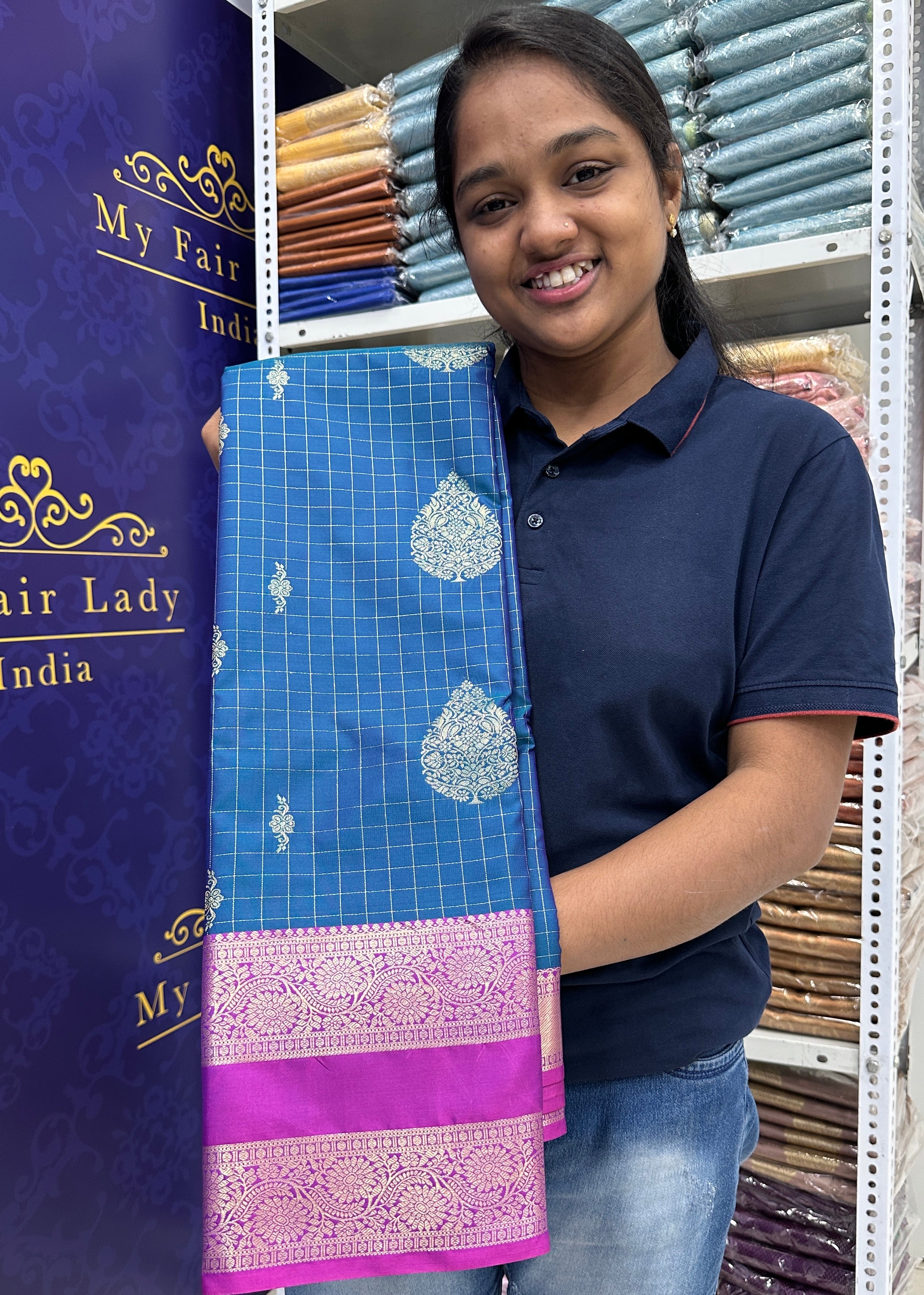 Premium Butta Semi-Silk Saree Peacock Neck Colour - [Code 971]