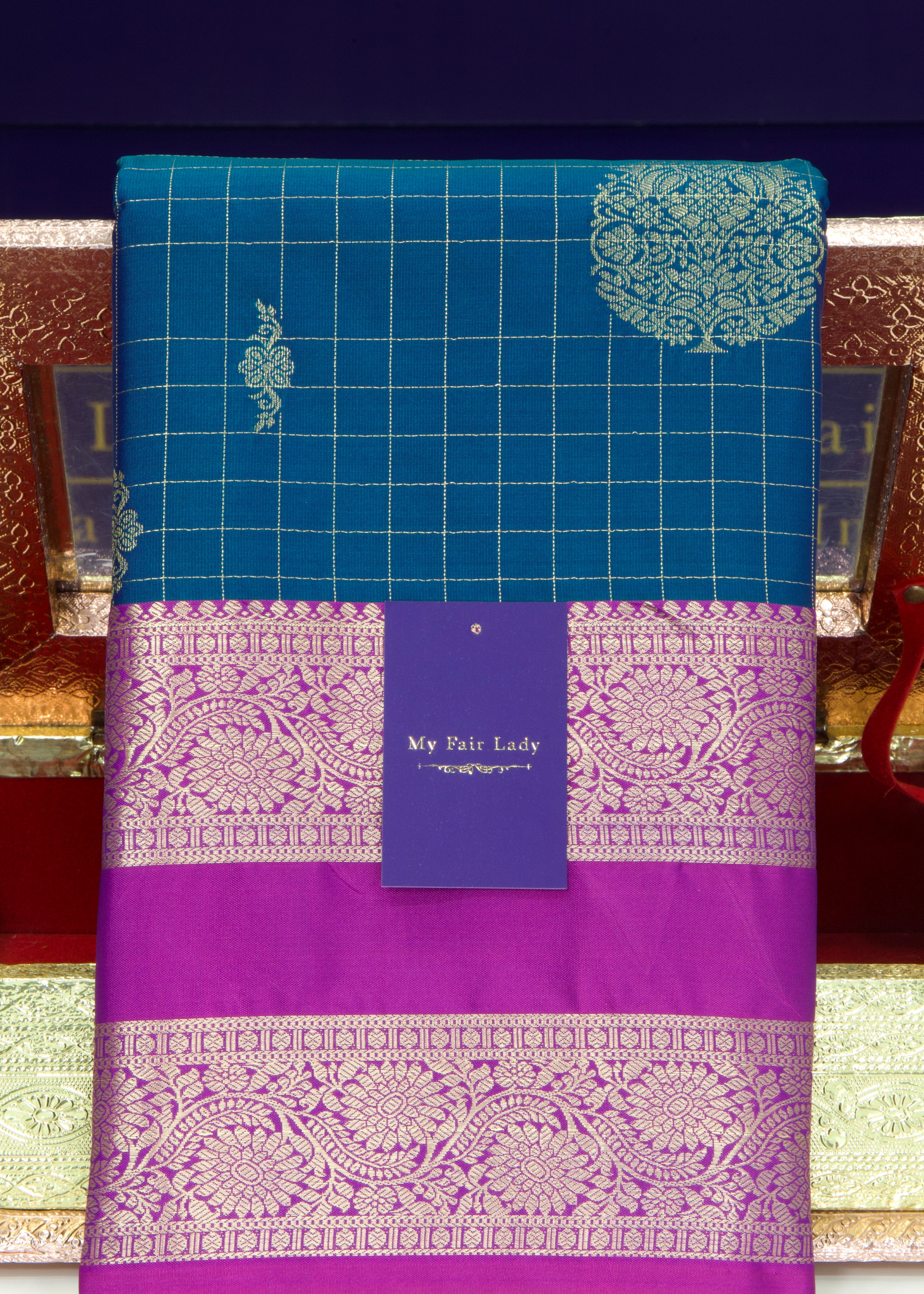 Premium Brocade Semi-Silk Saree Sea Blue X Gold Colour - [Code 933]