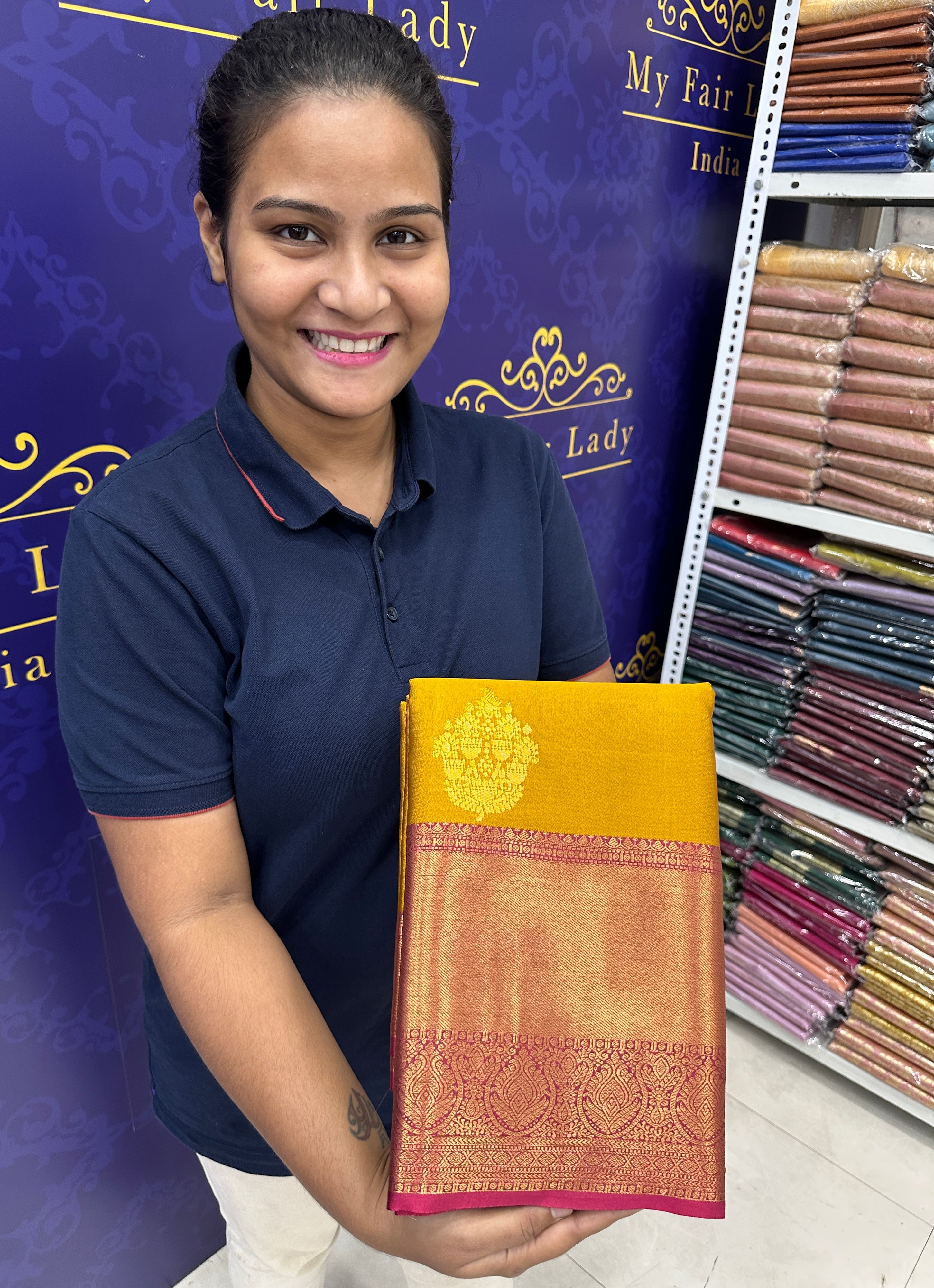 Premium Butta Semi-Silk Saree Turmeric Yellow Colour - [Code 967]
