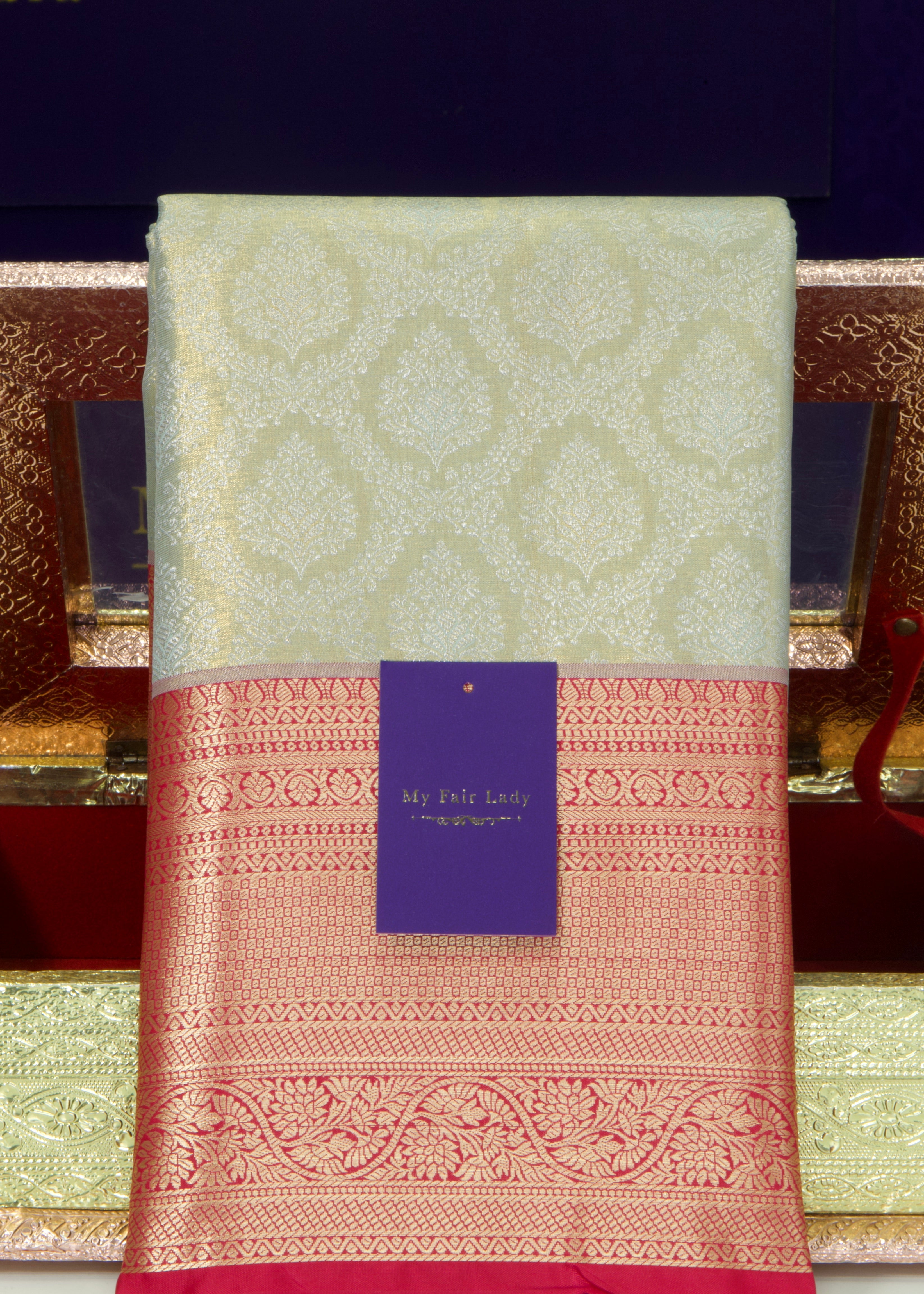 Premium Brocade Semi-Silk Saree Mint Colour - [Code 830]