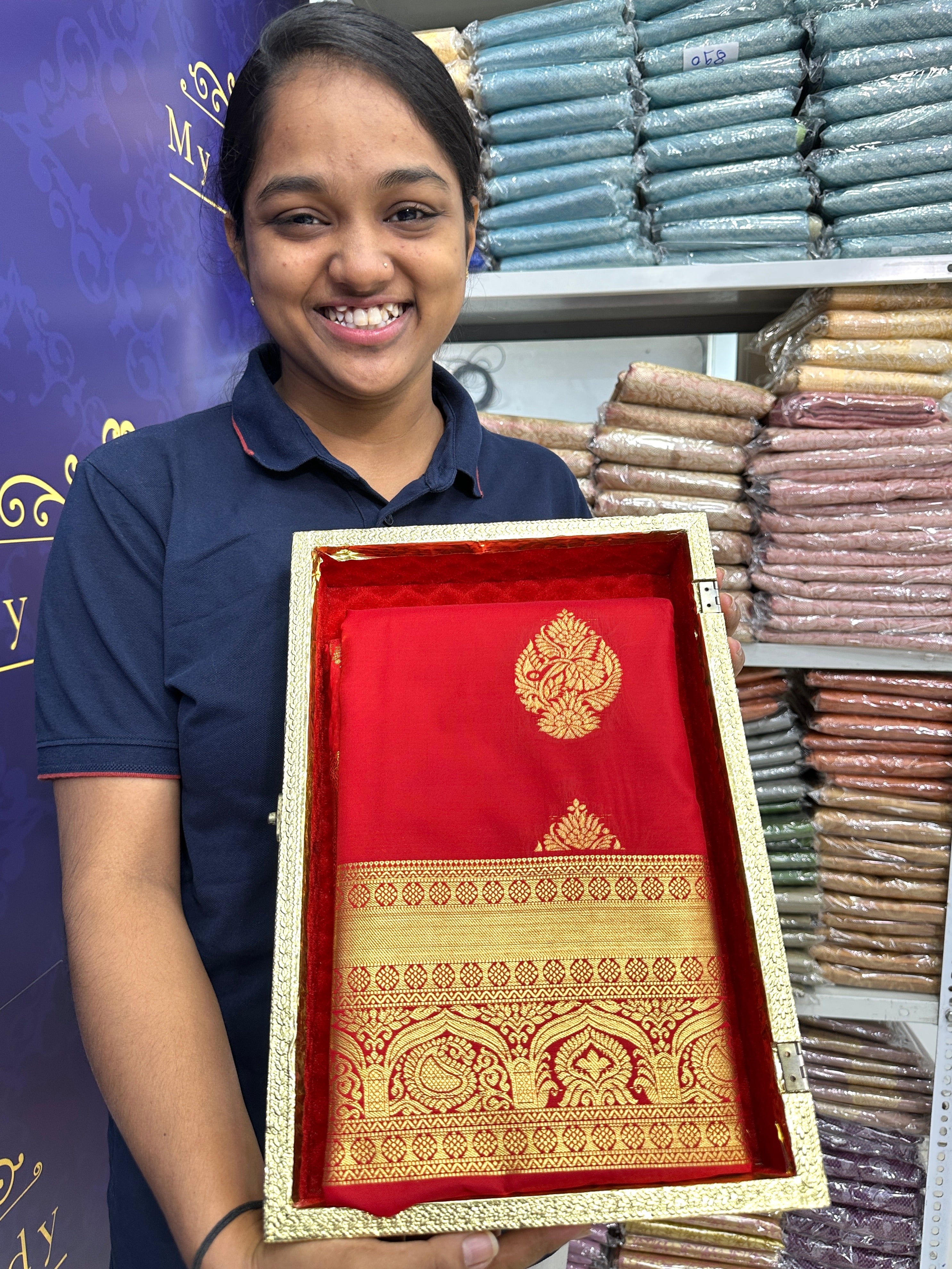 Premium Butta Semi-Silk Saree Royal Red Colour - [Code 704]