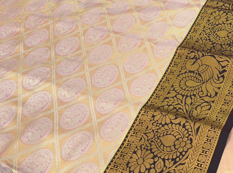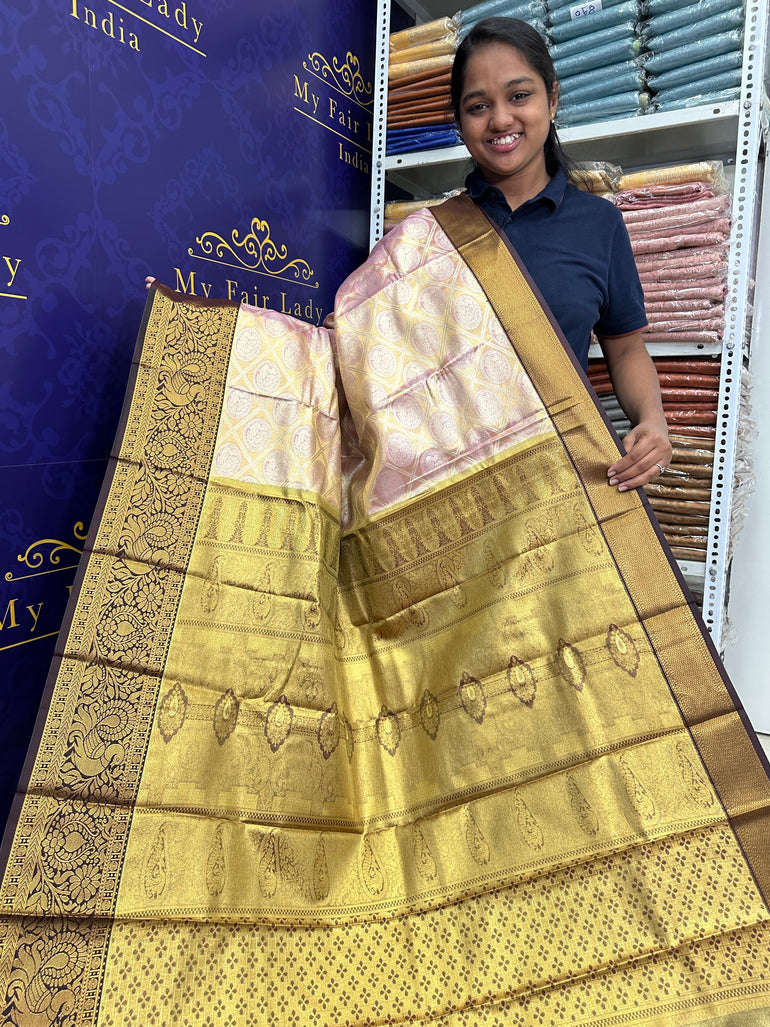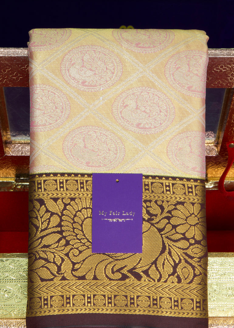 Premium Gadwal Semi-Silk Saree Yellowish Pink Colour - [Code 1504]