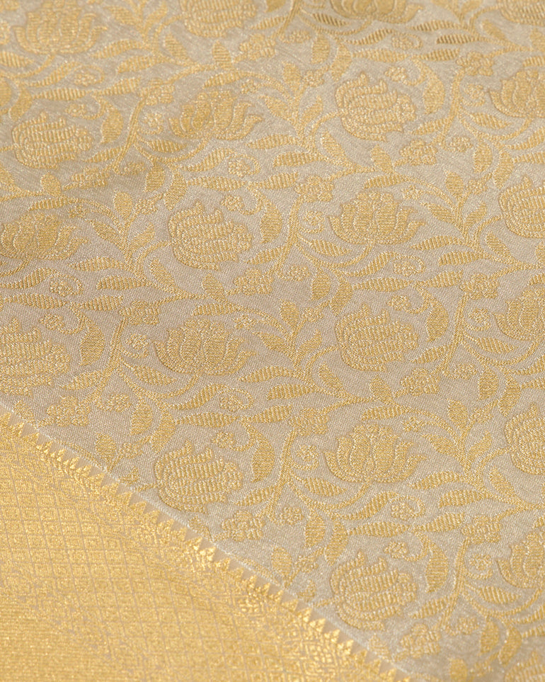Premium Brocade Semi-Silk Saree Grey X Gold Colour - [Code 935]
