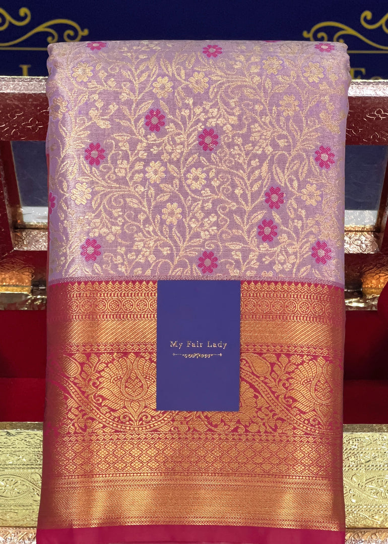 Premium Brocade Semi-Silk Saree Lavender Colour- [Code 975]