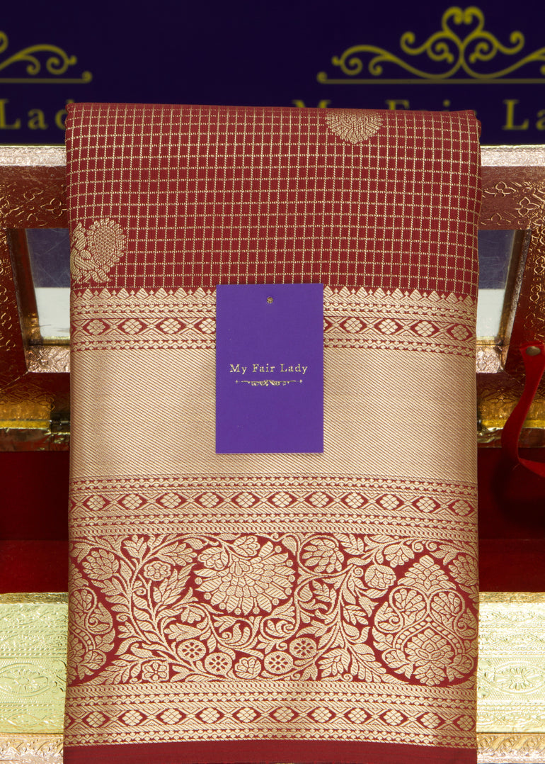 Premium Brocade Semi-Silk Saree Maroon Colour - [Code 1508]