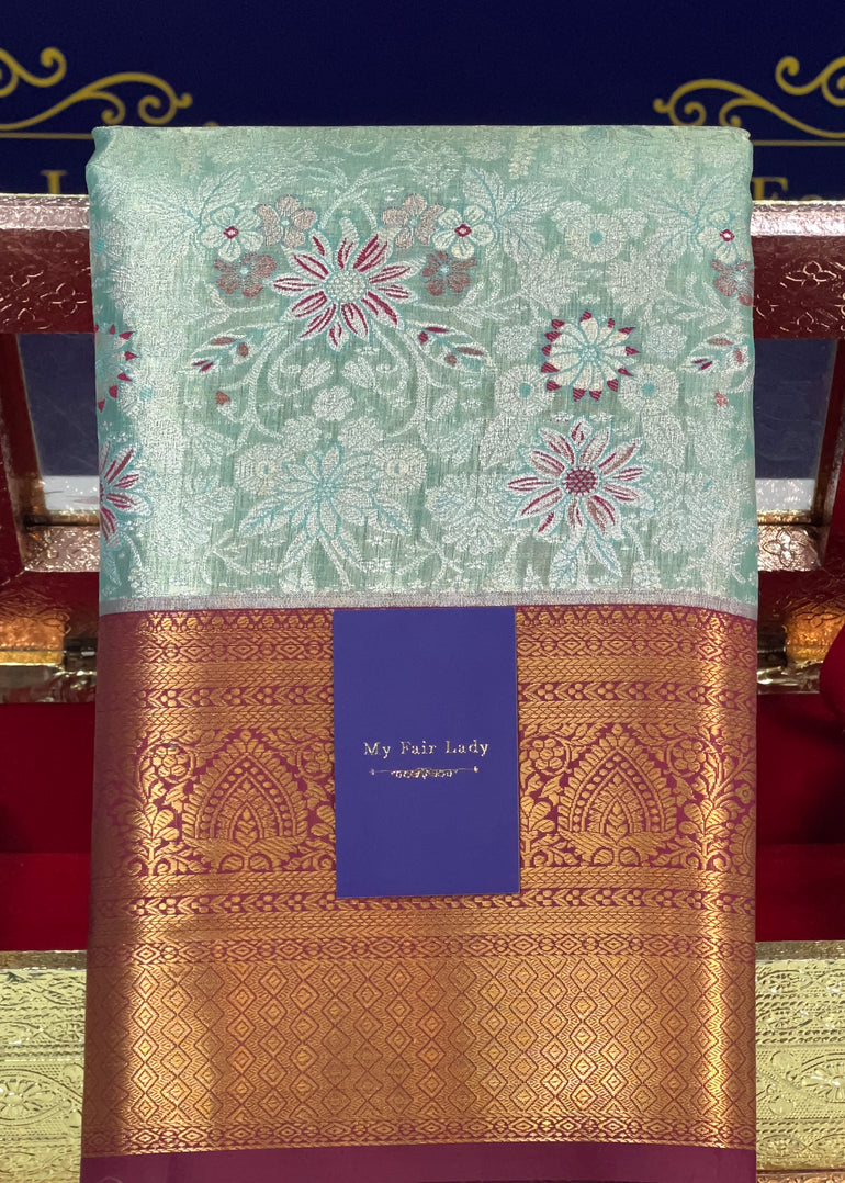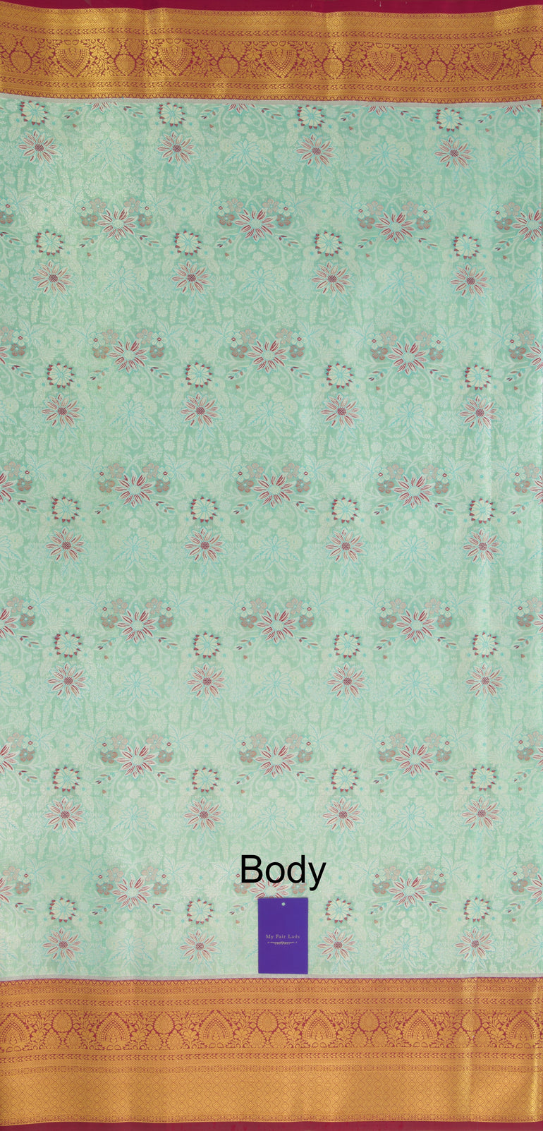 Premium Brocade Semi-Silk Saree Mint Green Colour- [Code 973]
