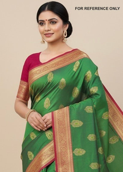 Premium Butta Semi-Silk Saree Green X Crimson Colour - [Code 706]