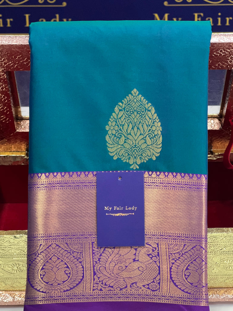 Saree Colour: Peacock Blue (Dual Tone)