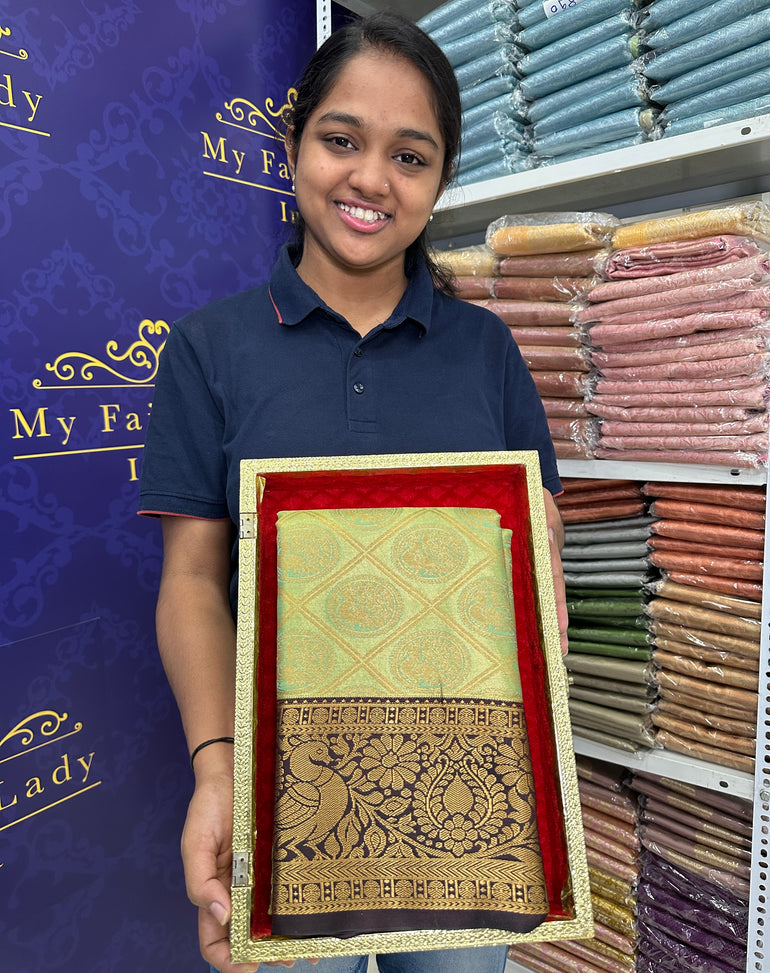 Premium Gadwal Semi-Silk Saree Light Green Colour - [Code 1504]