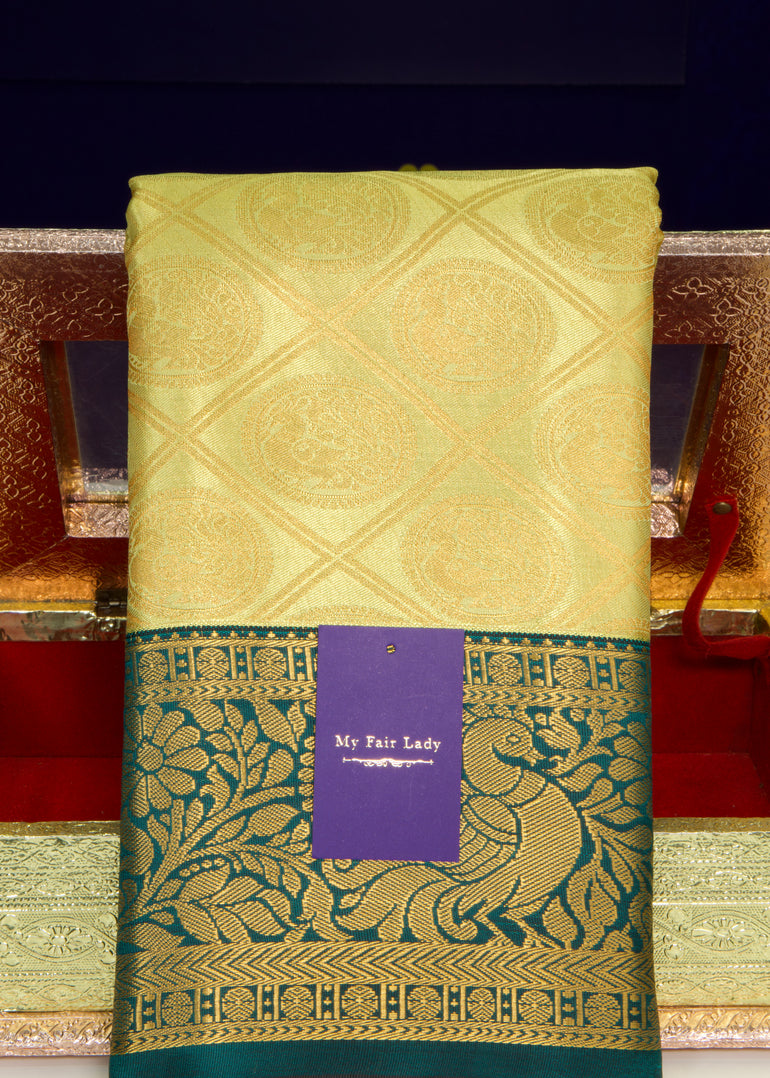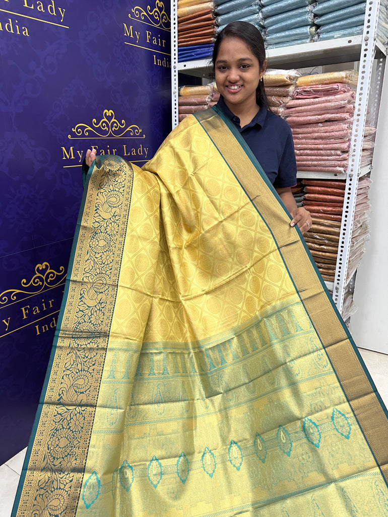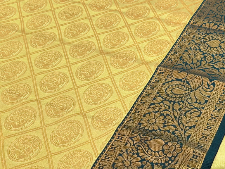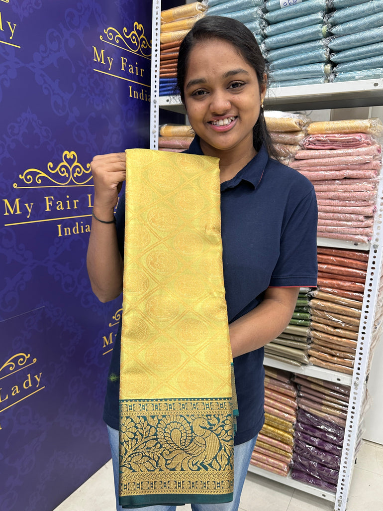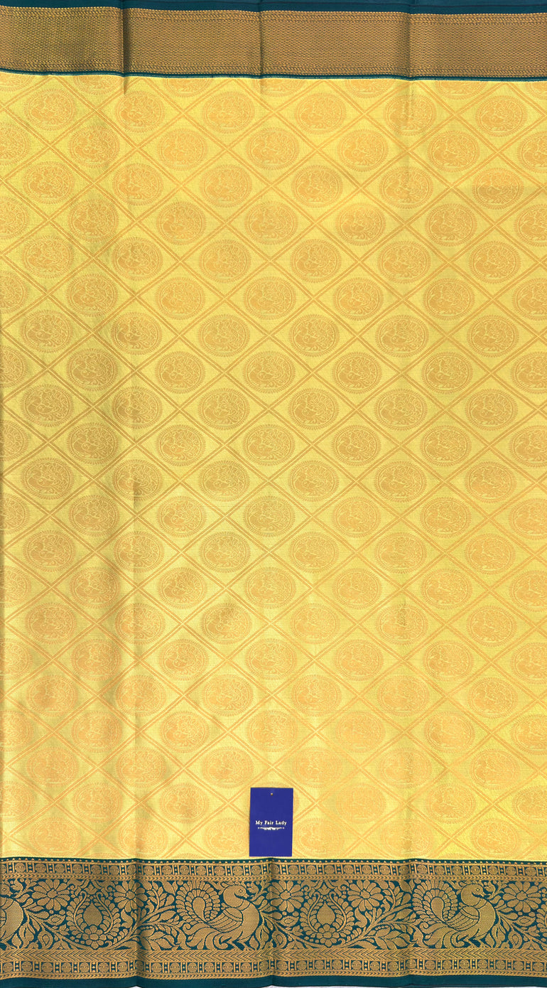 Premium Gadwal Semi-Silk Saree Yellow X Blue Colour - [Code 1504]