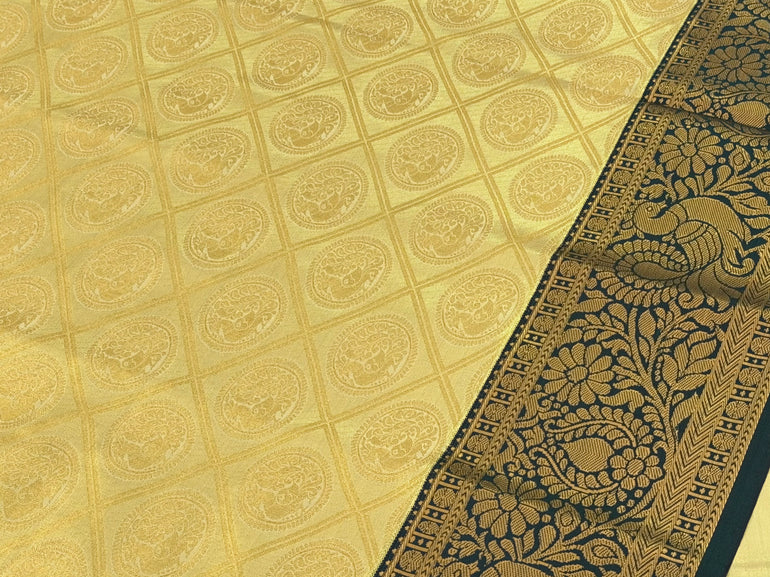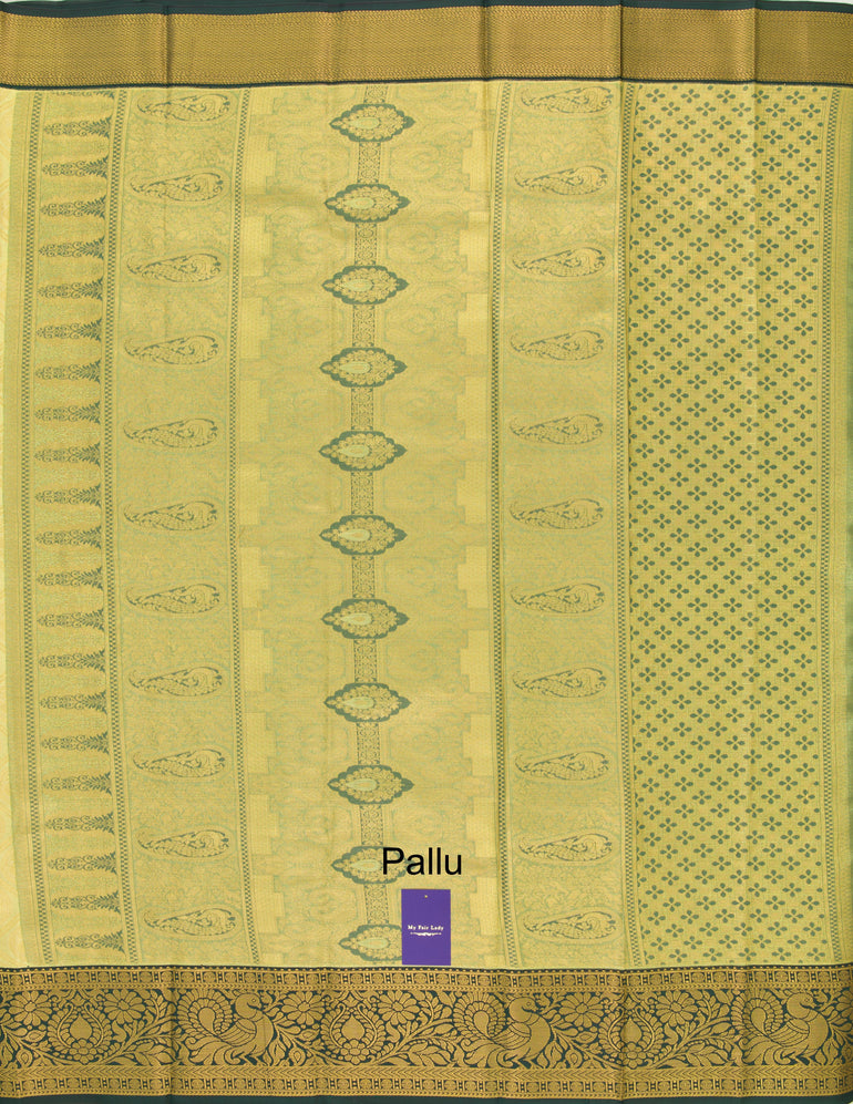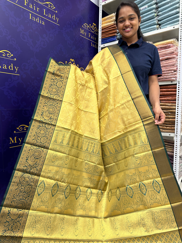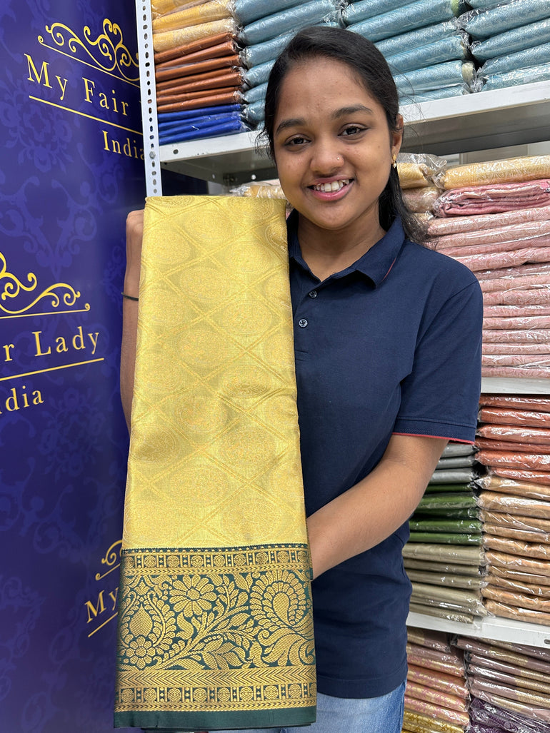 Premium Gadwal Semi-Silk Saree Yellow X Green Colour - [Code 1504]