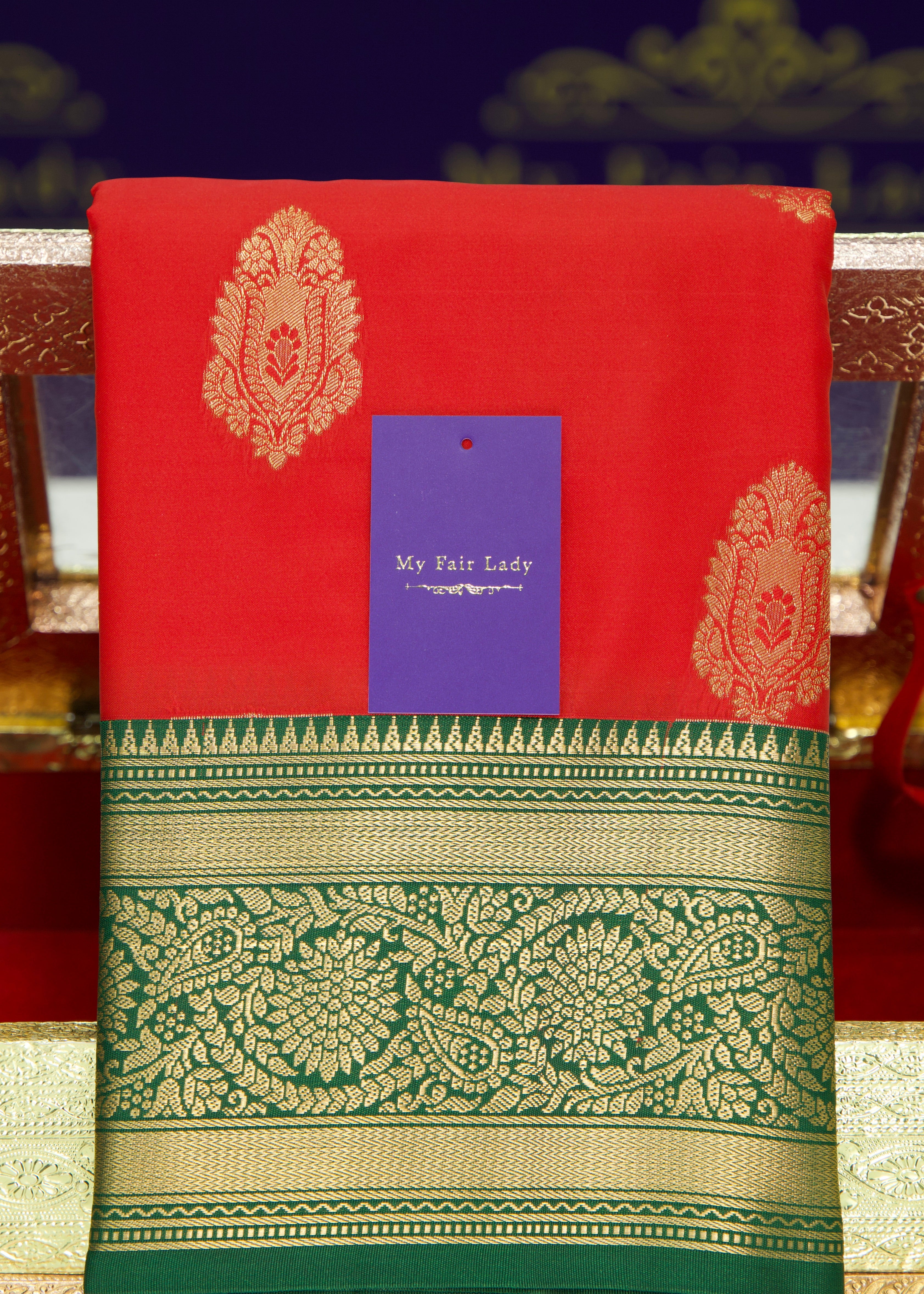Premium Butta Semi-Silk Saree Red X Green Colour - [Code 706]