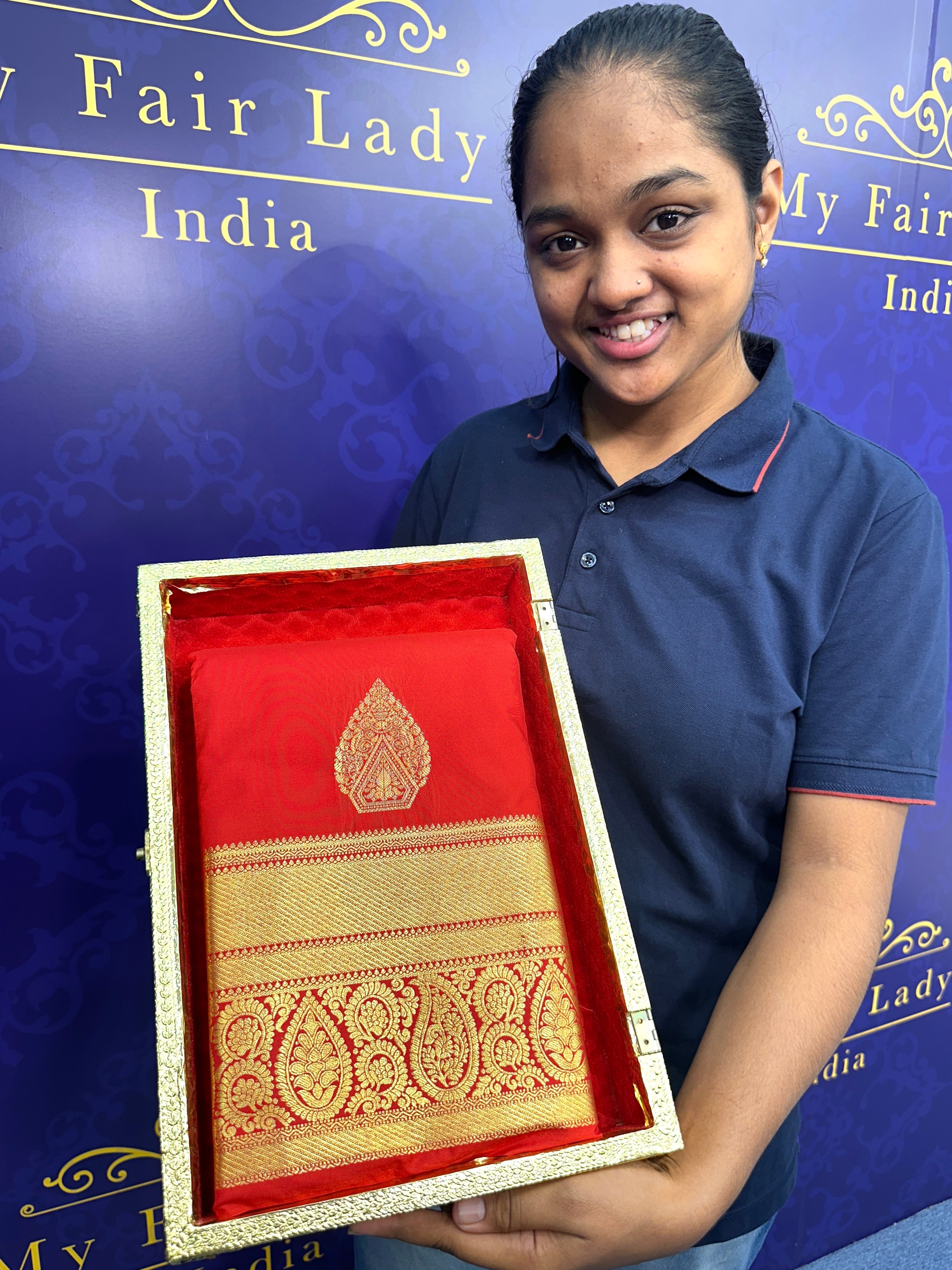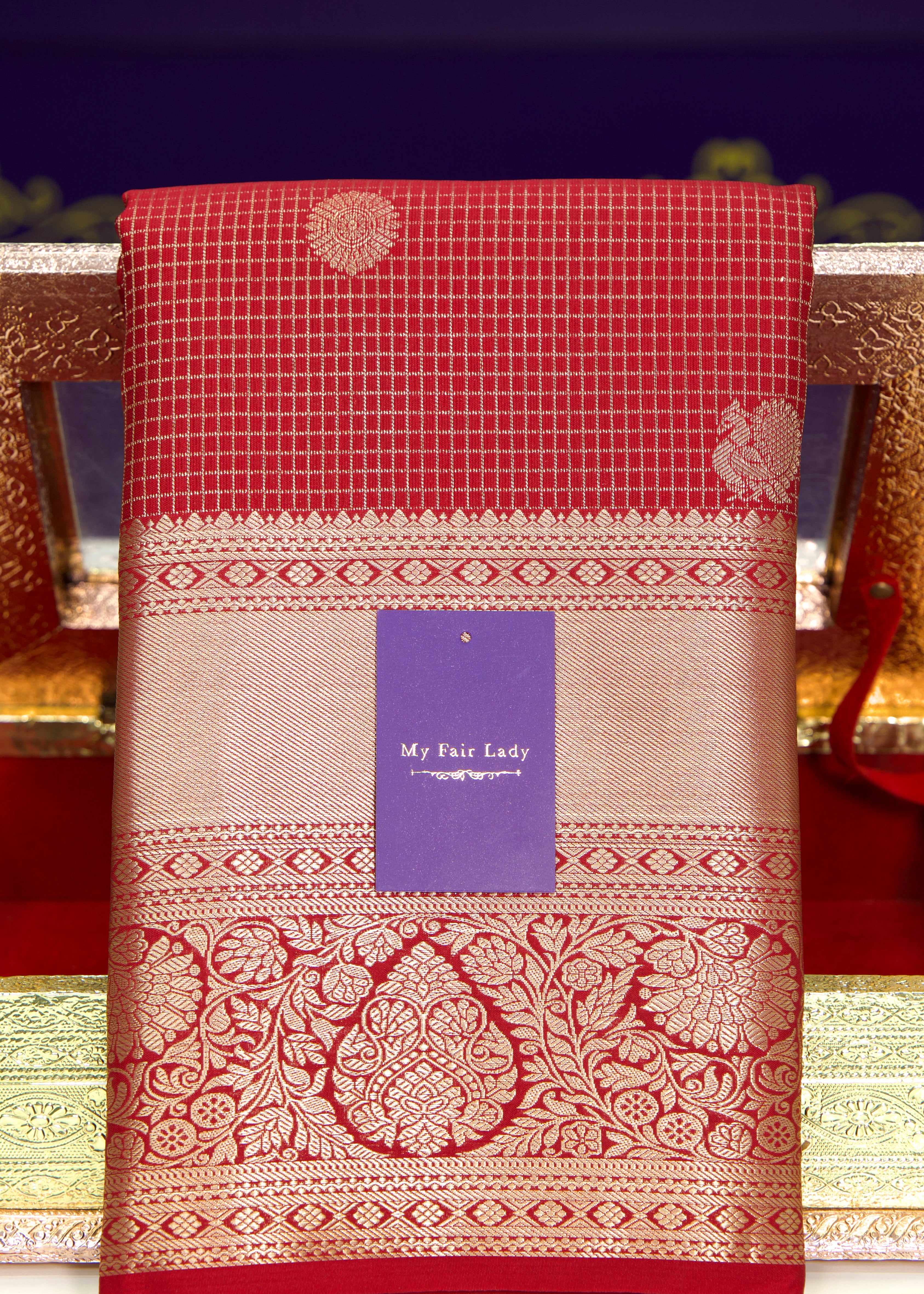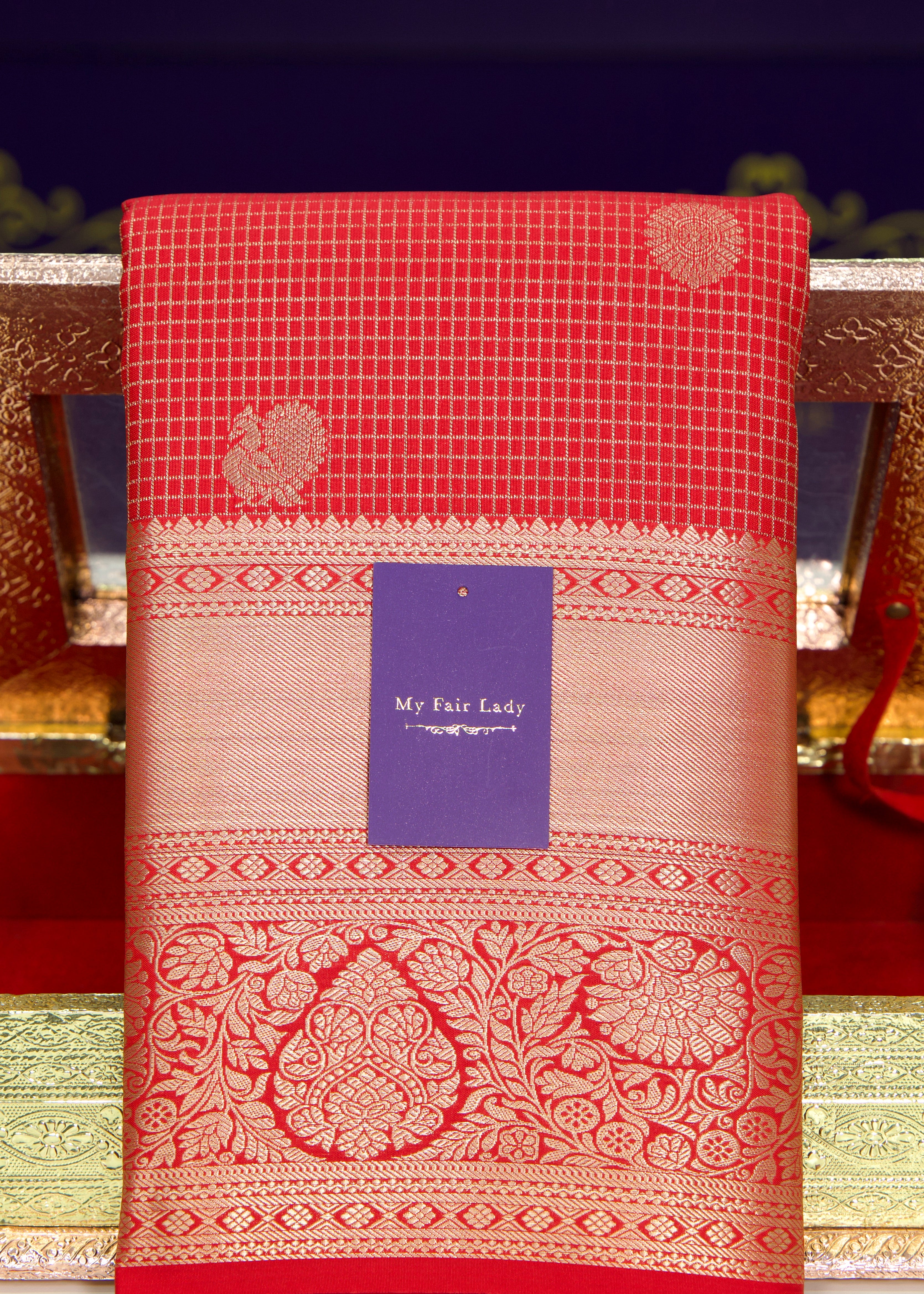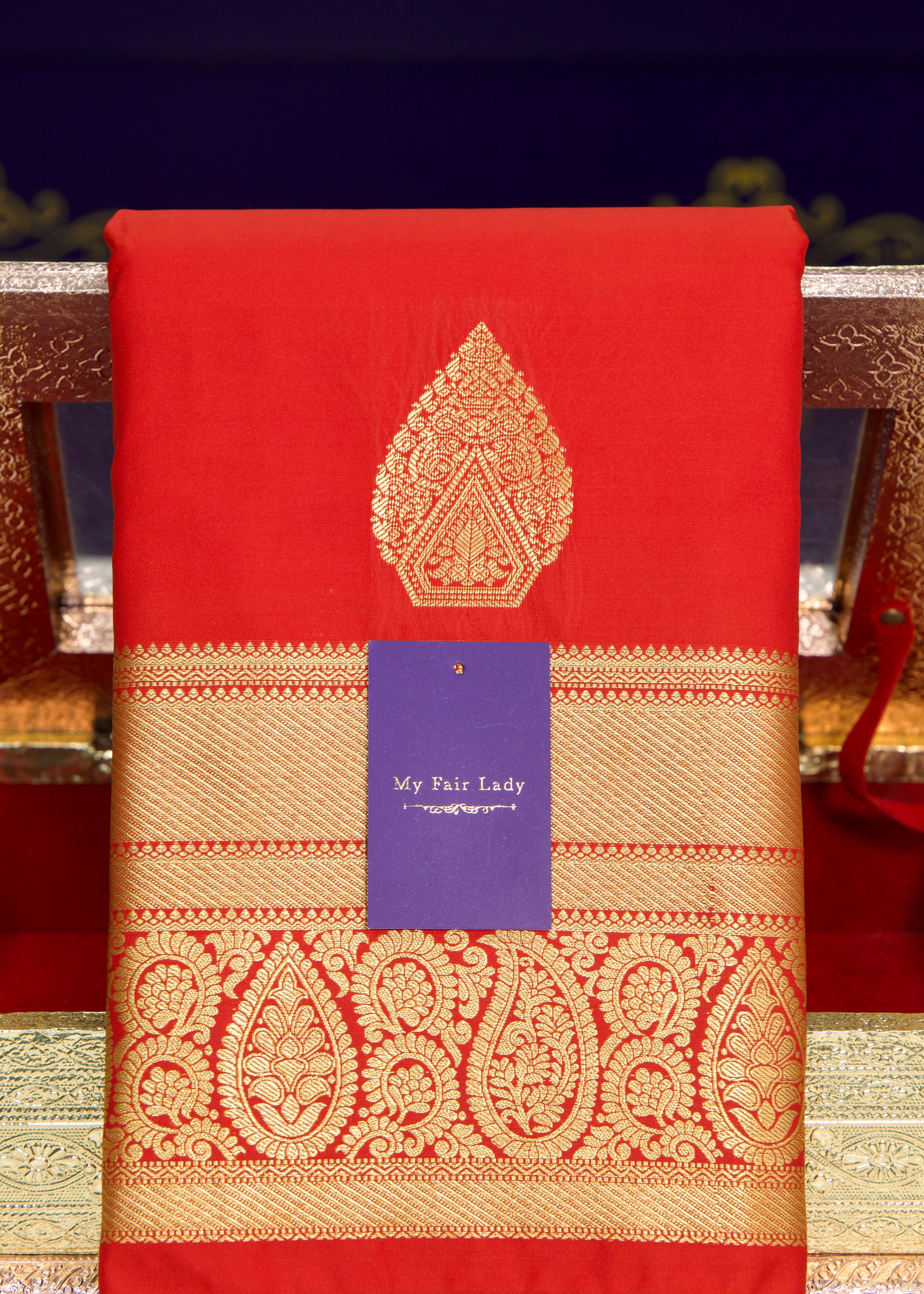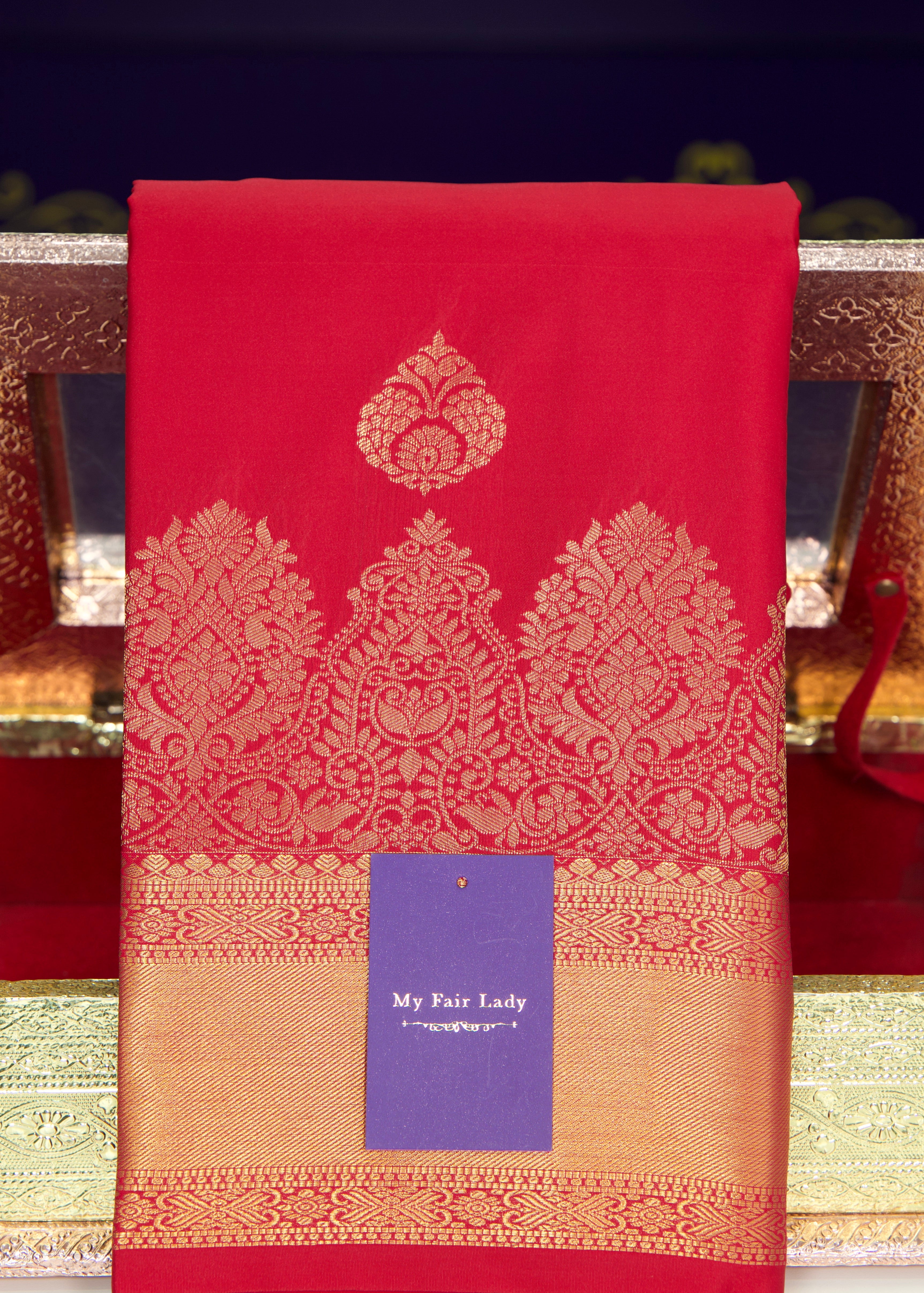 Premium Brocade Semi-Silk Saree Red Colour - [Code 1508]