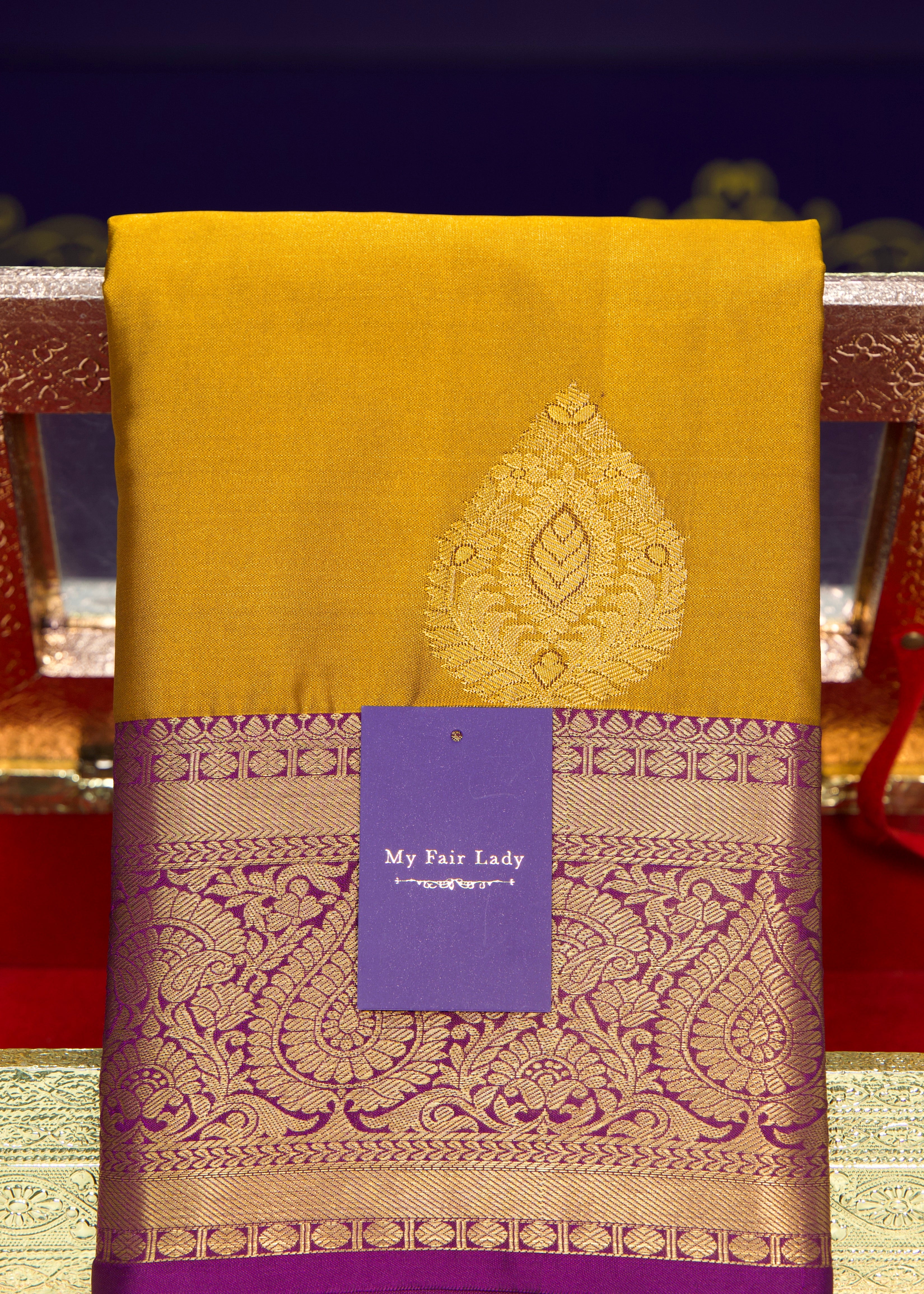 Premium Brocade Semi-Silk Saree Golden Mustard Colour- [Code 991]