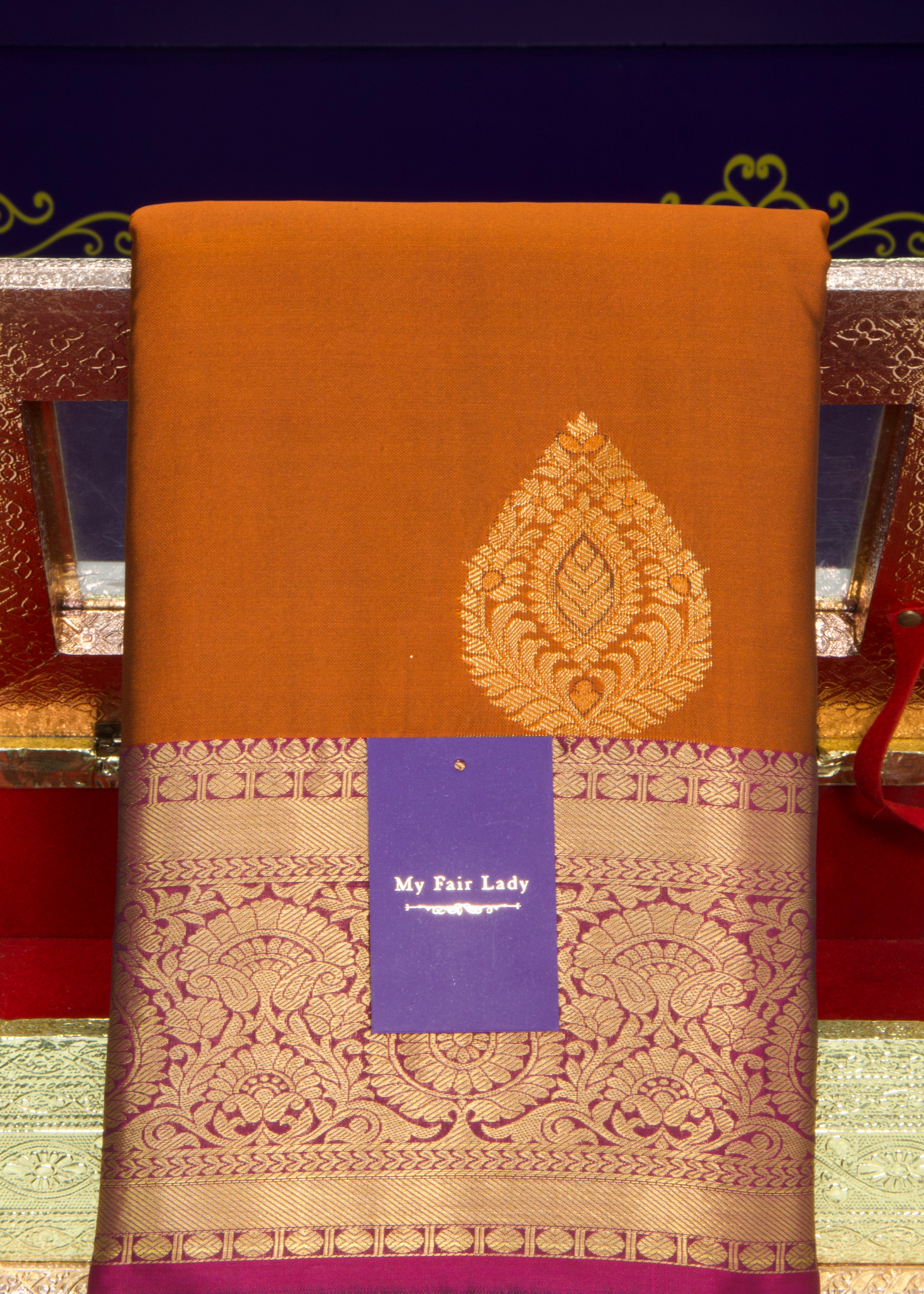 Premium Butta Semi-Silk Saree Rust Colour - [Code 1511]
