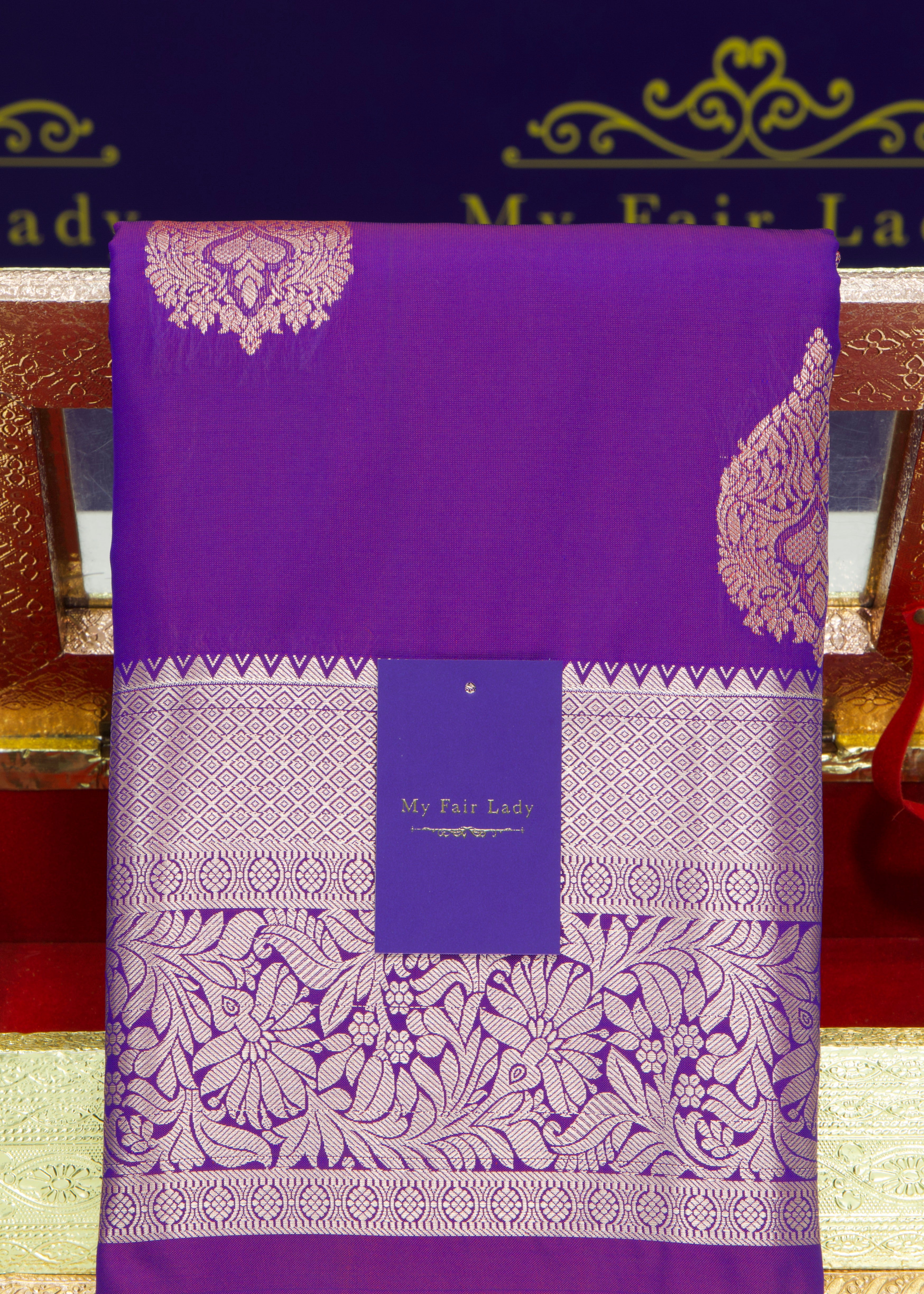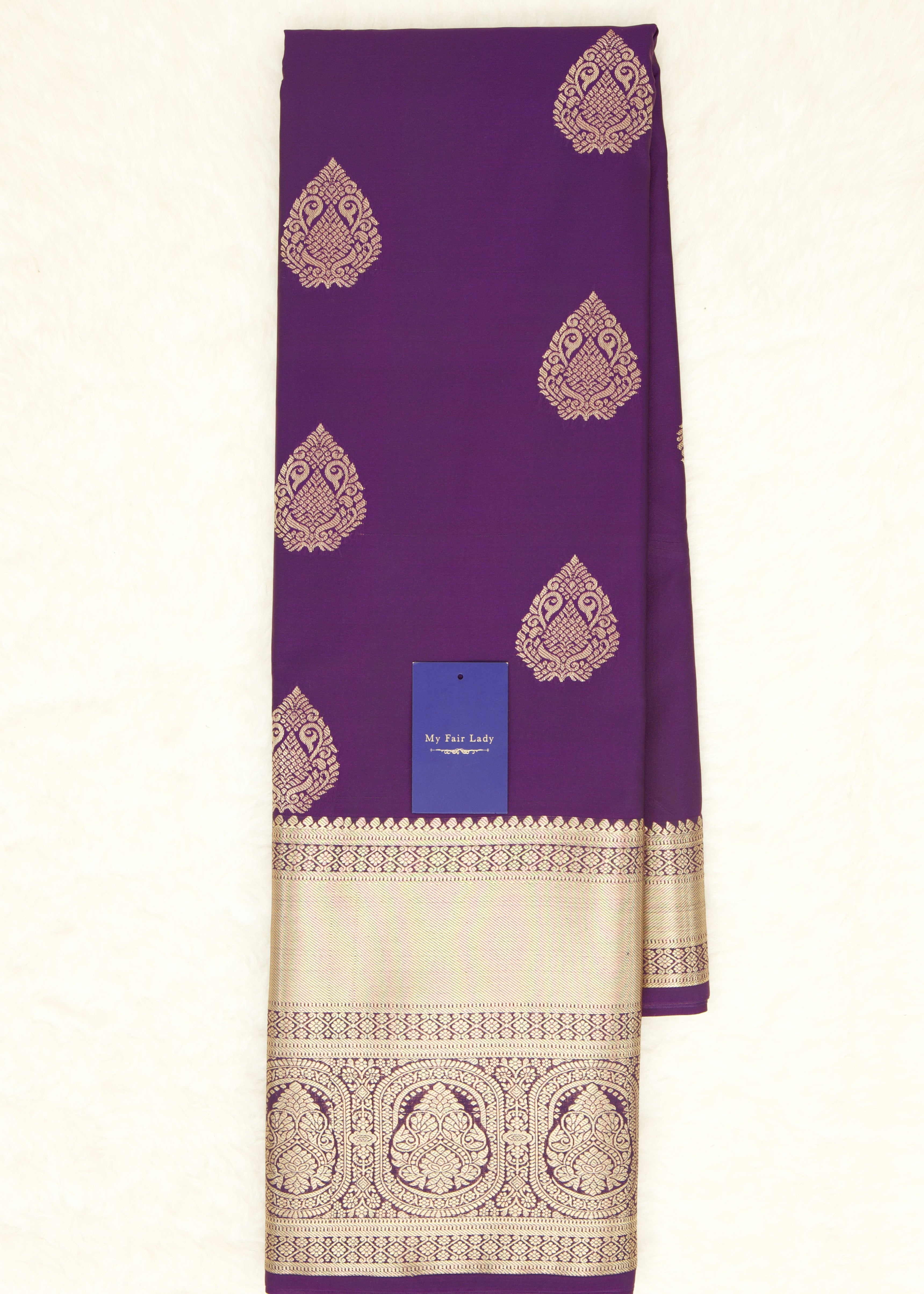 Premium Butta Semi-Silk Saree Royal Violet Colour - [Code 1515]