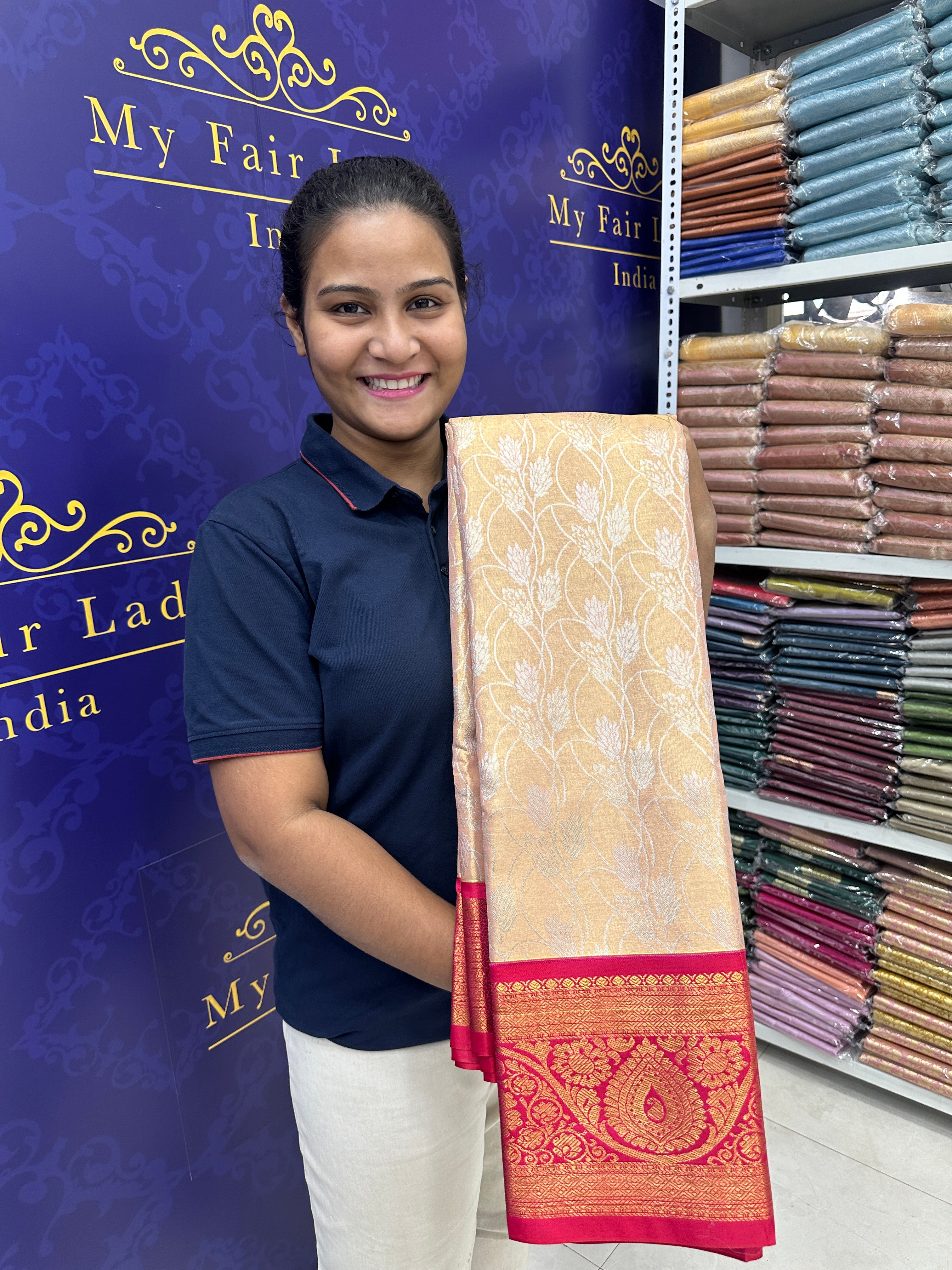 Premium Brocade Semi-Silk Saree Golden Beige Colour - [Code 875]