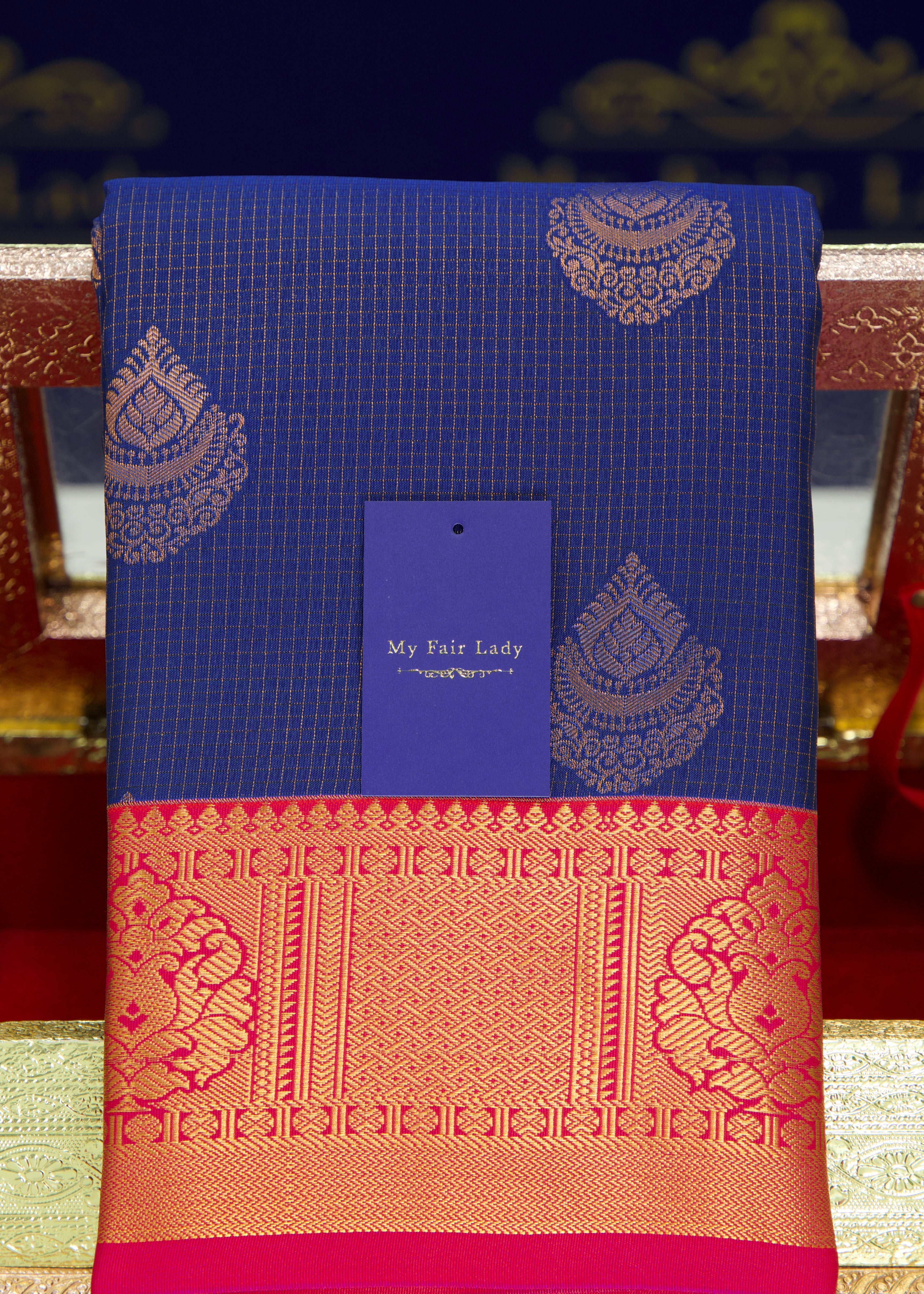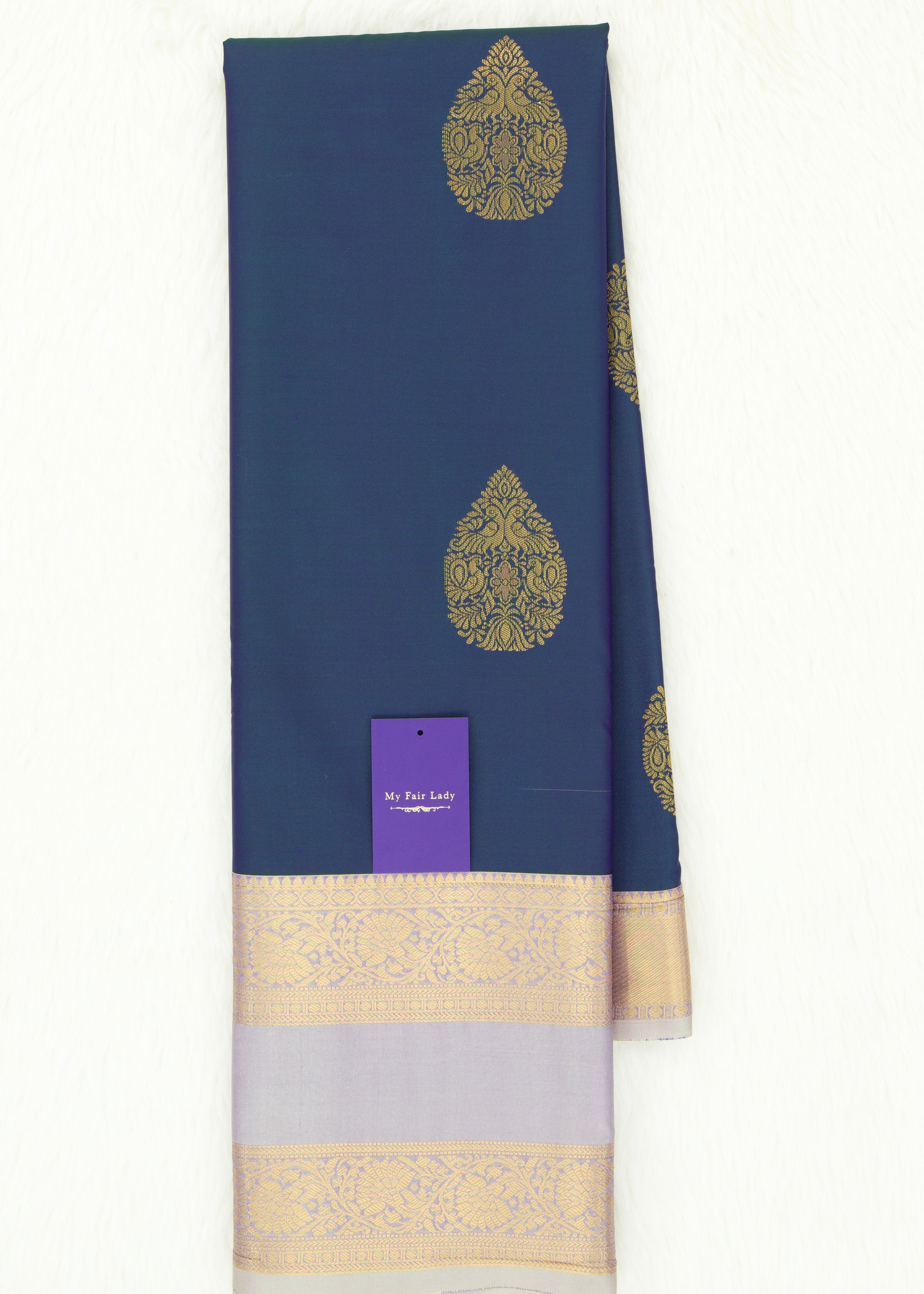 Premium Brocade Semi-Silk Saree Indigo Blue Colour - [Code 1517]