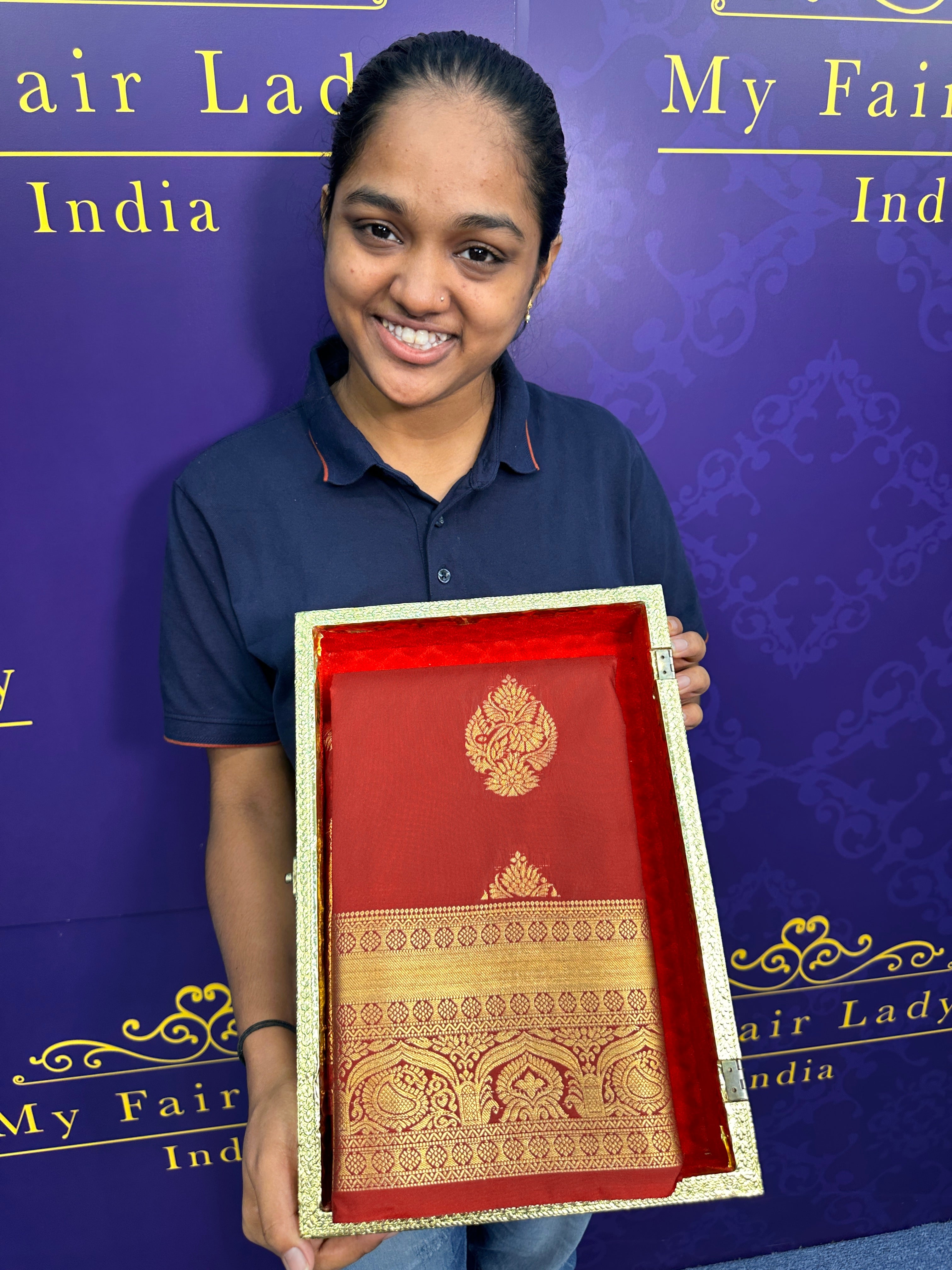 Premium Butta Semi-Silk Saree Dark Red Colour - [Code 704]