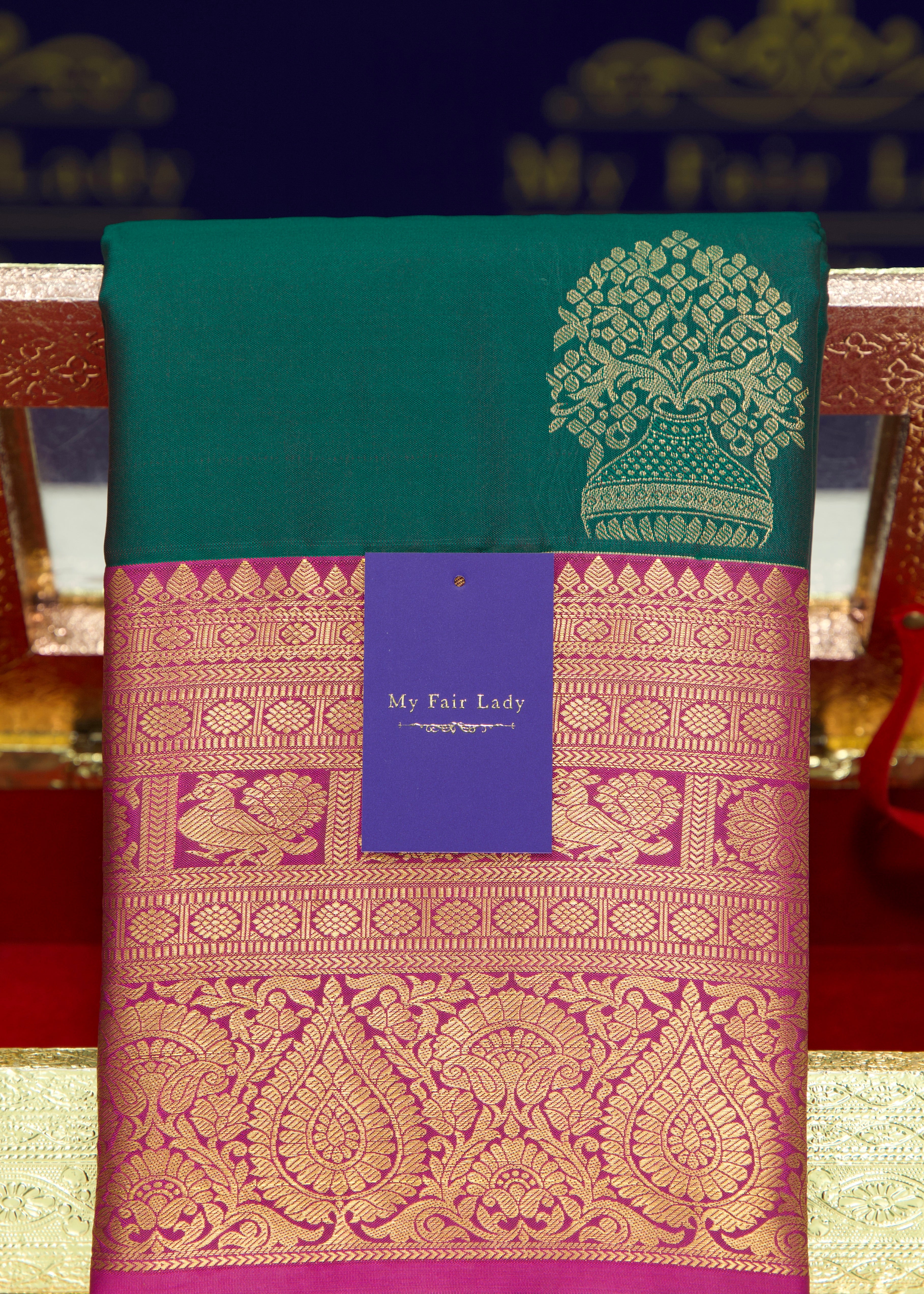Premium Brocade Semi-Silk Saree Peacock Green Colour - [Code 1508]
