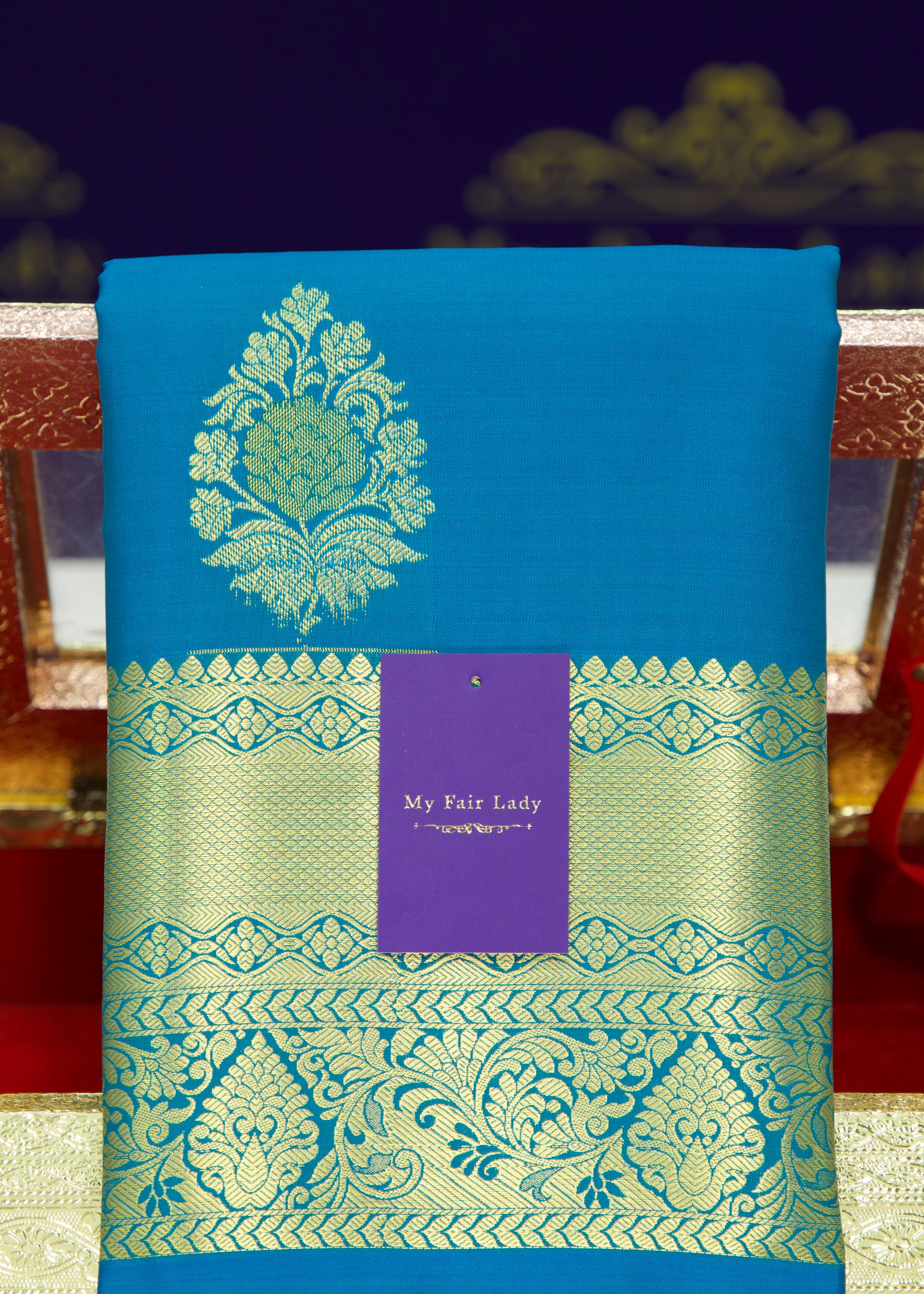 Premium Butta Semi-Silk Saree Peacock Blue Colour - [Code 985]