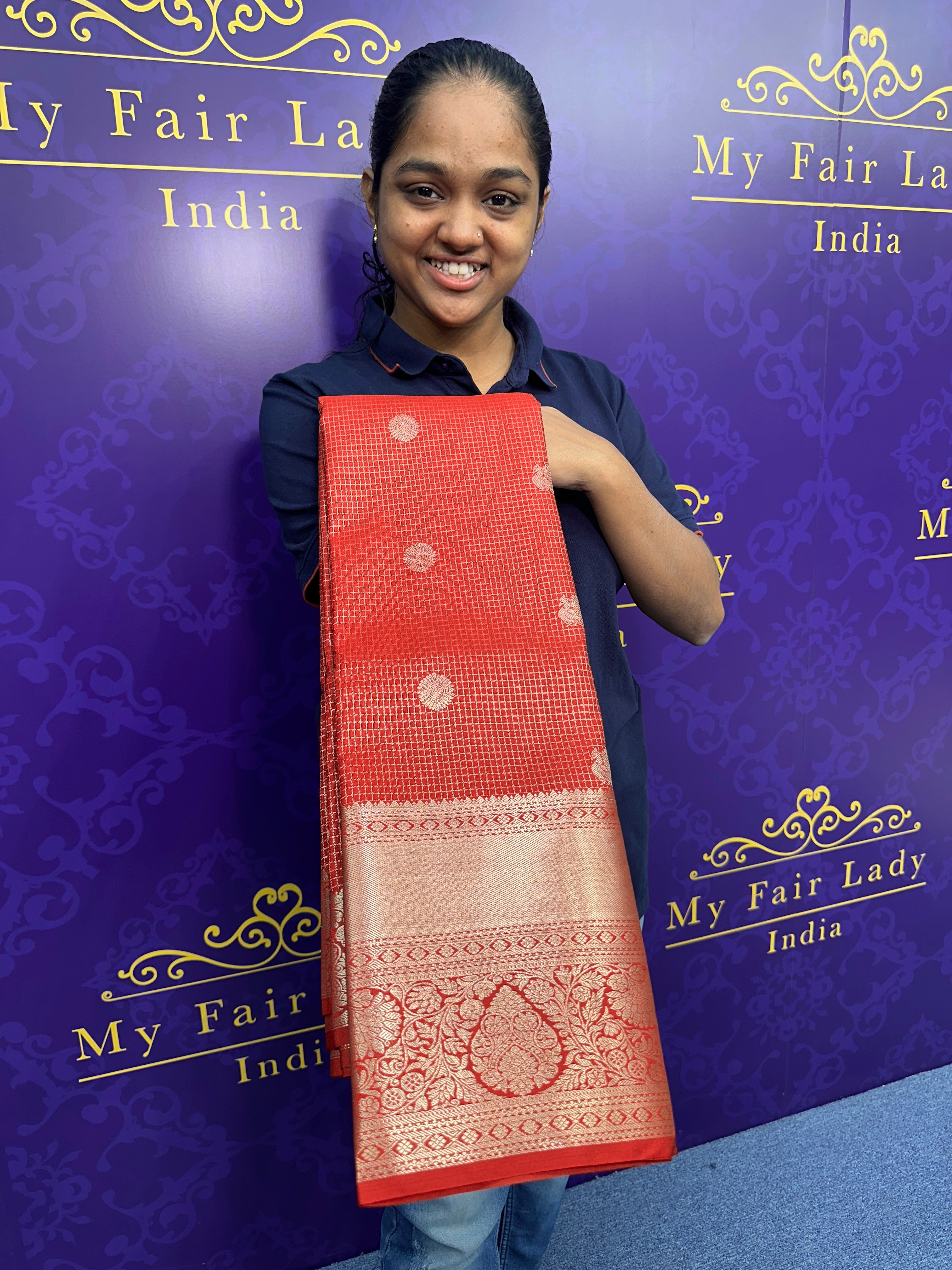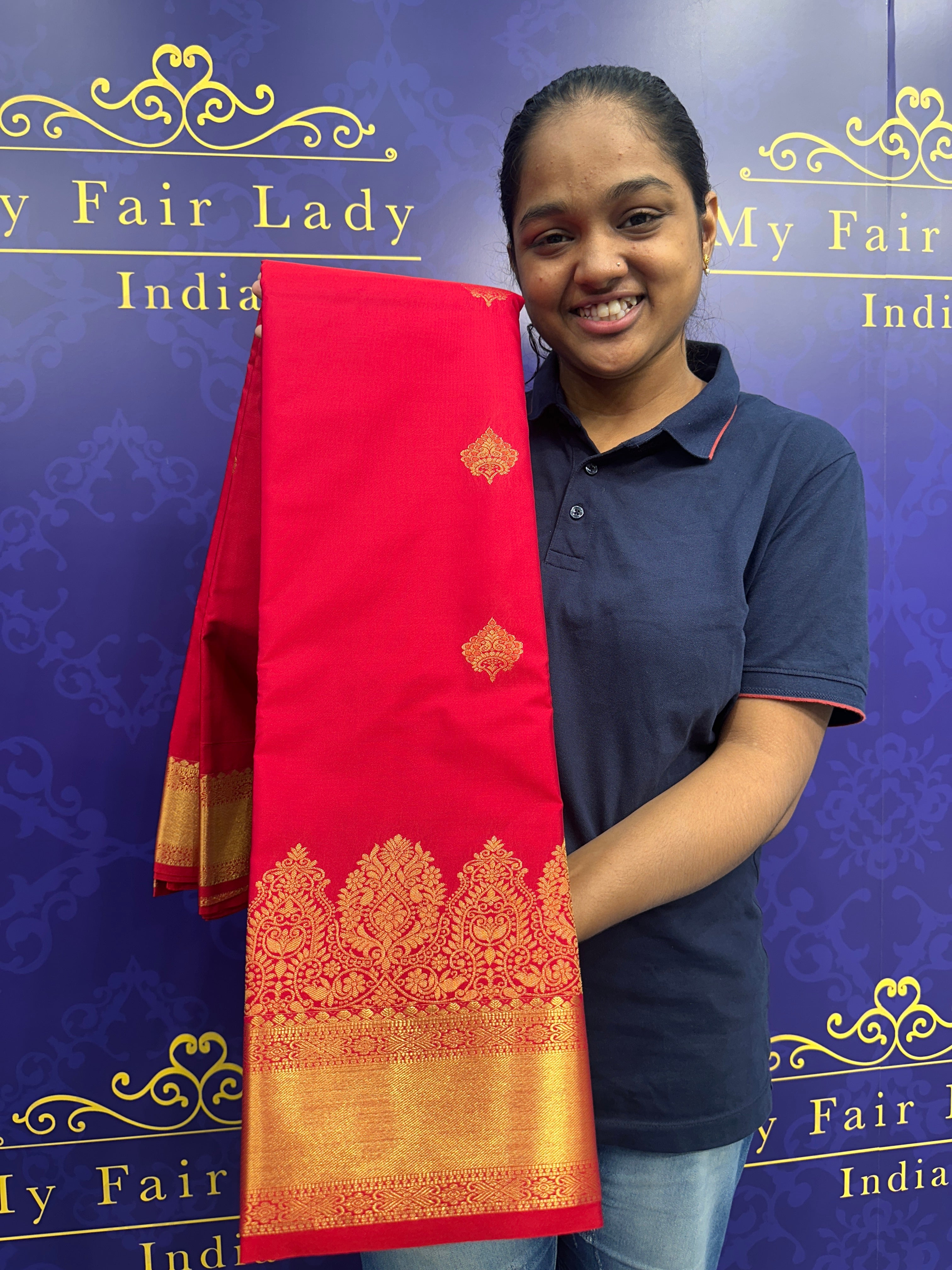 Premium Butta Semi-Silk Saree Bright Red Colour - [Code 704]