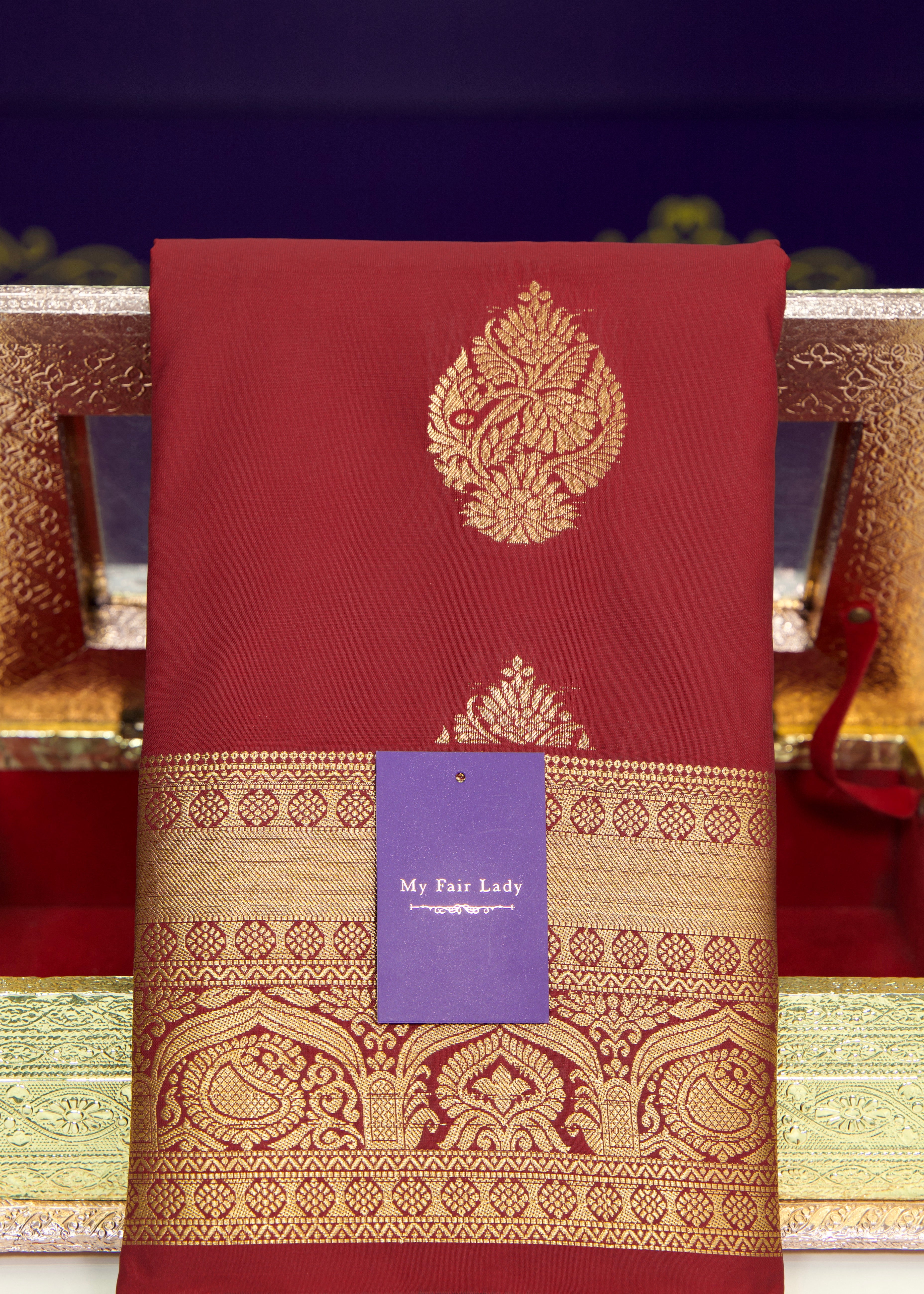 Premium Brocade Semi-Silk Saree Maroon Colour - [Code 1508]