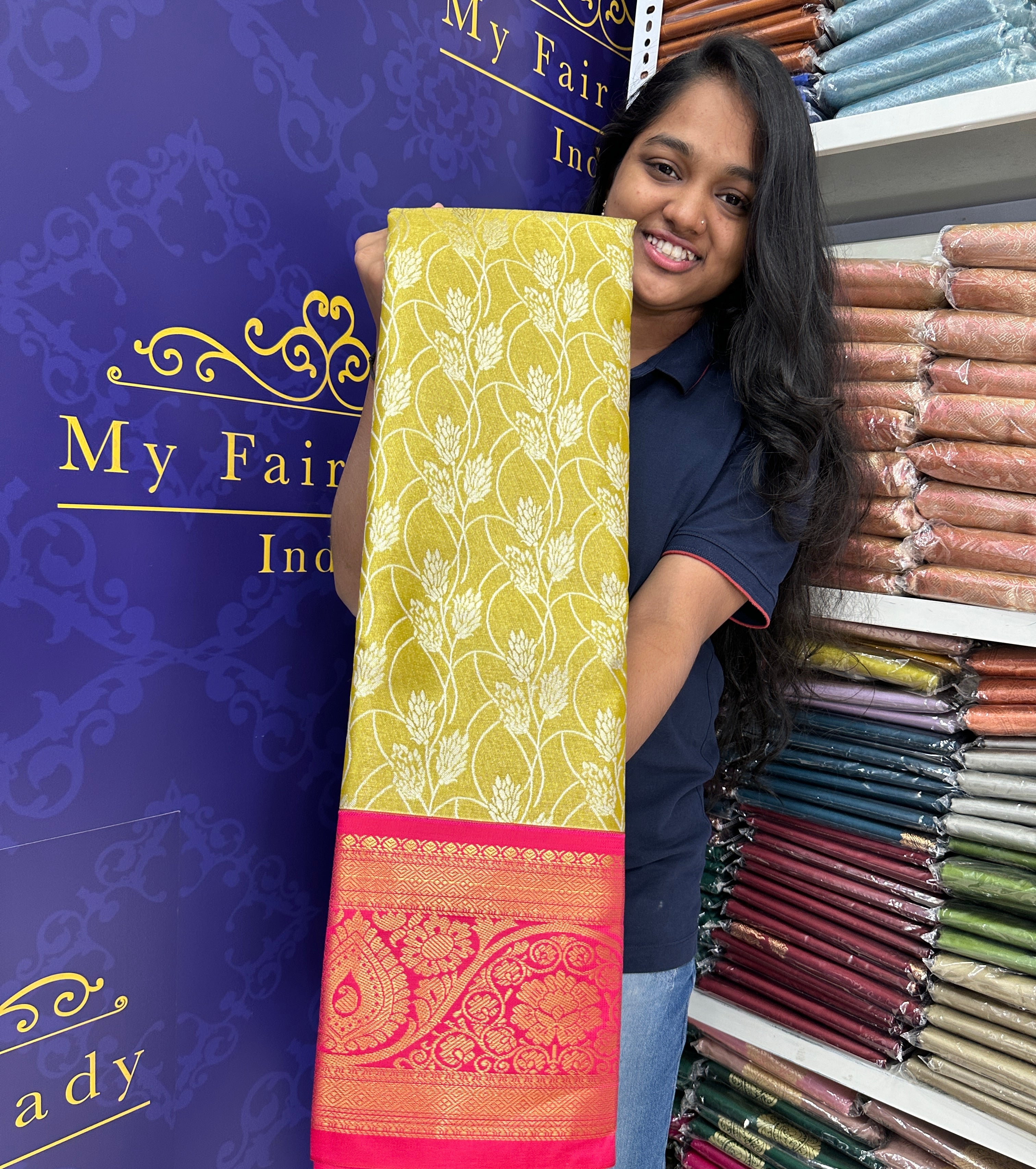 Premium Butta Semi-Silk Saree Henna Leaf Colour - [Code 1516]