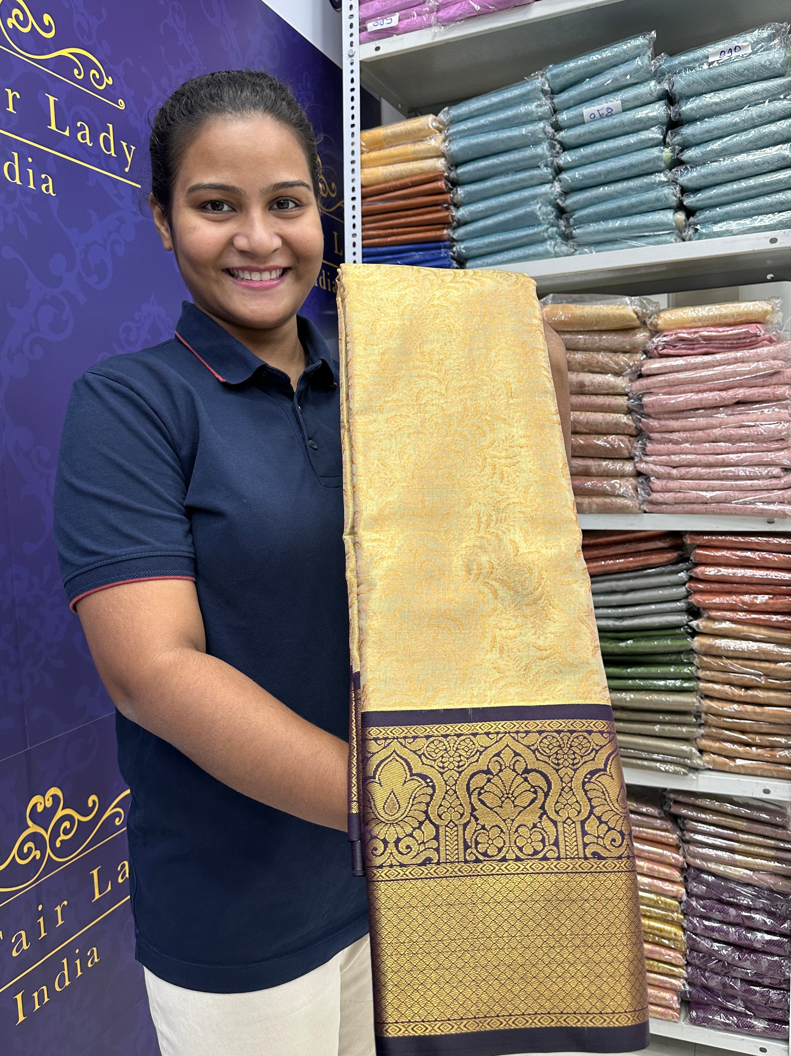 Premium Gadwal Semi-Silk Saree Champagne X Violet Colour - [Code 1505]