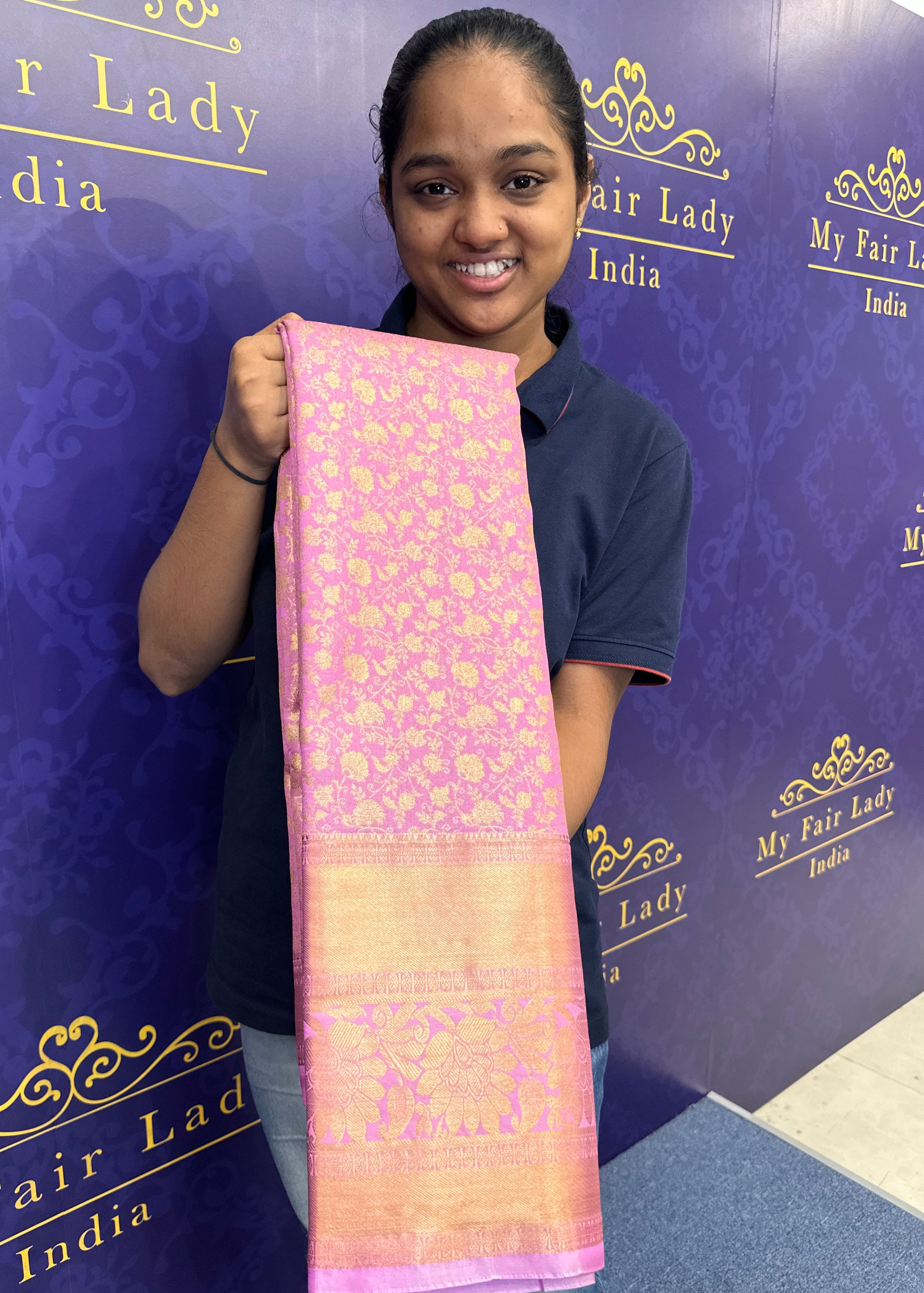 Premium Brocade Semi-Silk Saree Pink Colour - [Code 926]