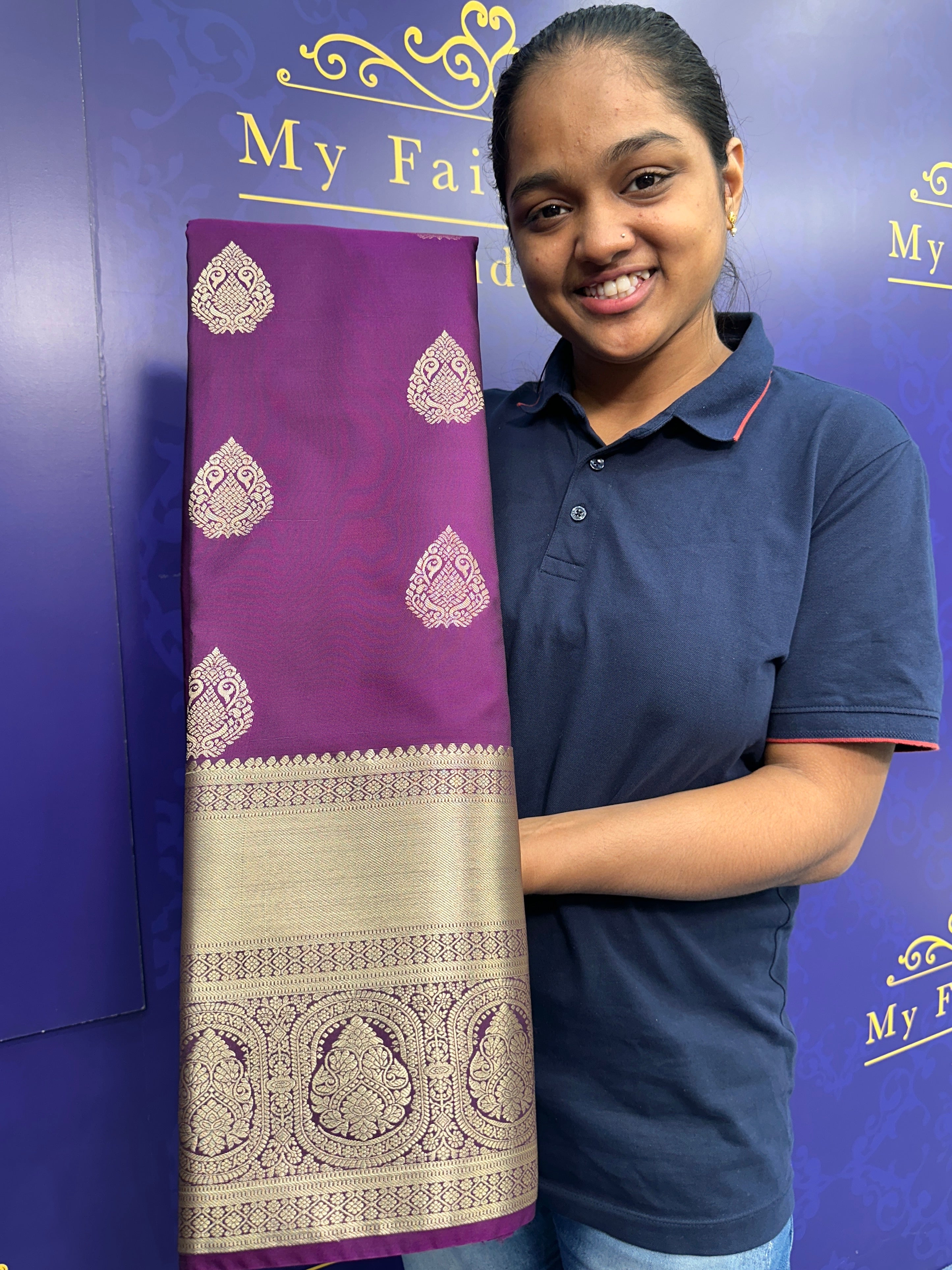 Premium Butta Semi-Silk Saree Violet Colour - [Code 981]