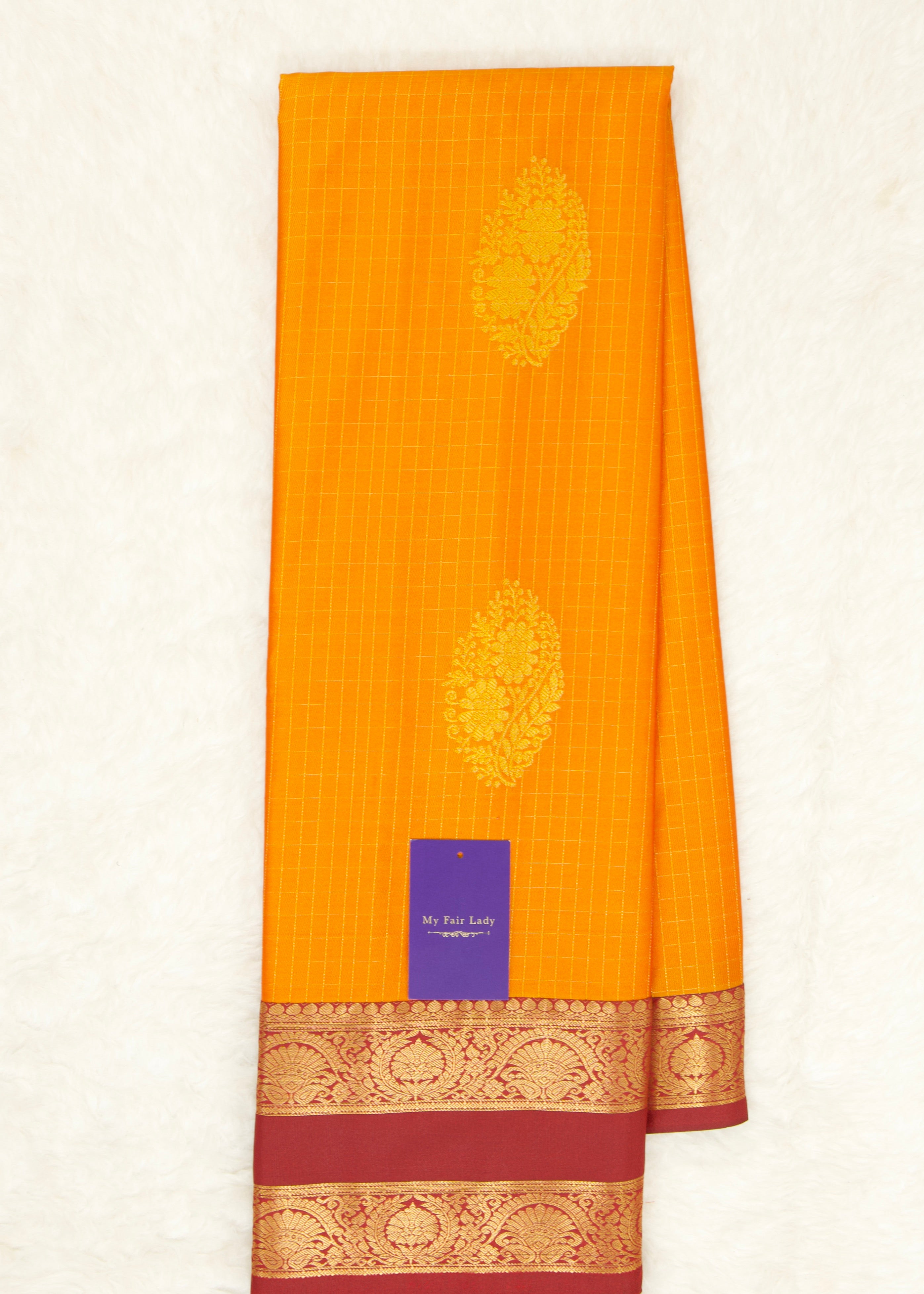 Premium Butta Semi-Silk Saree Golden Ochre Colour - [Code 1511]